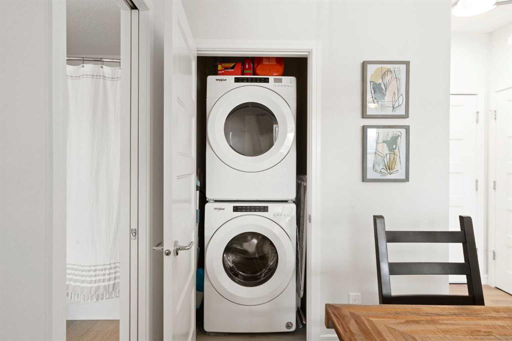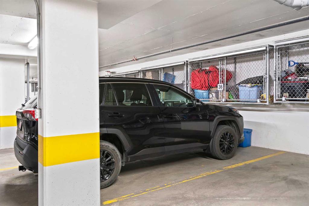 Welcome to The Apollo at Greenwich — this exceptional 2-bedroom, 2-bathroom condo offers TWO titled underground parking stalls (not tandem but two individual spaces) and TWO assigned storage cages — one conveniently located on the same floor as the unit and another on the parkade level. Enjoy an unobstructed view of the ski hill at Canada Olympic Park from your private balcony, adding to the appeal of this bright and modern unit! The open-concept layout features a contemporary kitchen with quartz countertops, stainless steel appliances, and ample cabinetry, seamlessly connecting to a spacious living area filled with natural light. The primary bedroom includes a walk-through closet and ensuite, while the second bedroom provides excellent flexibility for guests, a home office, or a roommate setup. Additional highlights include in-suite laundry, professional management, and a pet-friendly building with visitor parking and secure bike storage. Ideally located steps from the Calgary Farmers’ Market West, parks, and pathways, with easy access to downtown and the mountains via Stoney Trail.