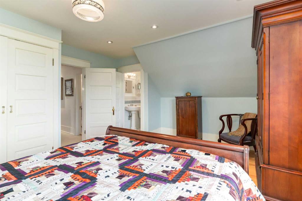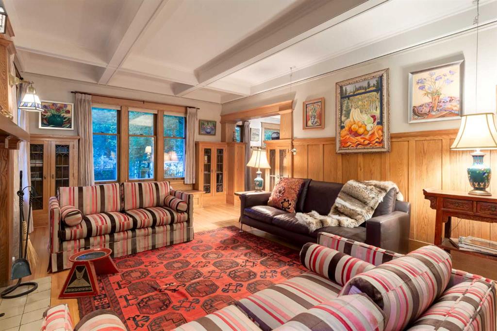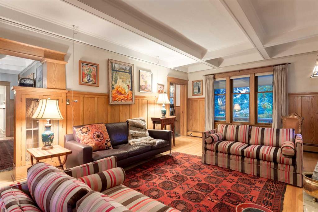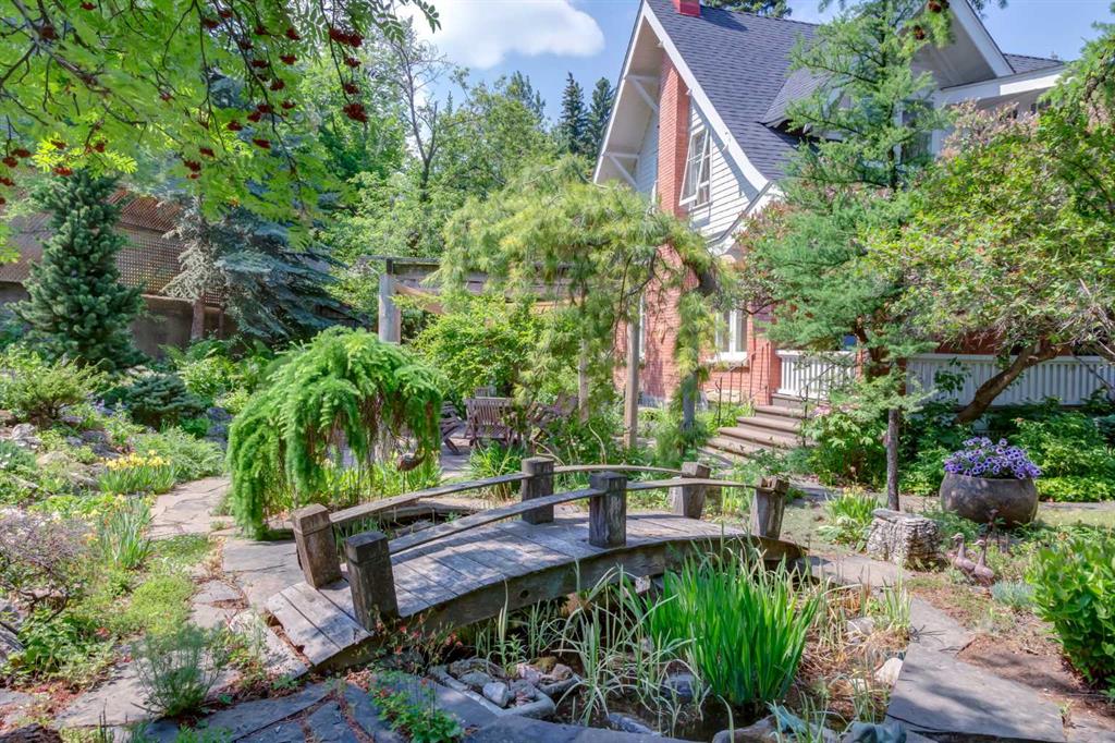 Welcome to the Rideout (Mitchell-Sproule) Residence, a designated Municipal Historic Resource located in Calgary’s sought-after Upper Mount Royal community. Built in 1912, this beautifully maintained Craftsman-style home offers a rare blend of preserved heritage detail and thoughtful modern updates. Positioned on a quiet pie-shaped lot, the property enjoys elevated views of the downtown skyline and Nose Hill Park. This two-storey residence features four generously sized bedrooms, a comfortable library or entertainment area, and a wine/root cellar tucked beneath a main floor powder room added in 2015. The original millwork with leaded glass, restored quarter-sawn oak, and a hidden liquor cabinet from the Prohibition era speak to the home’s storied past. A major renovation completed in the 1990s introduced radiant stone floor heating, oak hardwood, and custom finishes throughout, enhancing comfort while maintaining architectural integrity. The kitchen, renovated in 1995 by Empire Kitchen & Bath, includes Downsview cabinetry, a Sub-Zero refrigerator, a custom copper hood fan, and city-facing windows that bring natural light into the space. The front veranda overlooks a mature garden established over 77 years ago, now a vibrant arboretum featuring multiple species of larch trees and a tranquil pond that attracts a variety of birds. Outdoor dining areas are integrated into the landscape, creating a private urban retreat. Heating is provided through a combination of radiant and hot water baseboard systems. A wood-burning fireplace anchors the main living area, while leaded-glass built-ins and original detailing add warmth and character. There is potential to reconfigure the upper level to create a spacious primary suite. The property also includes an oversized detached double garage, providing ample space for vehicles and storage. This home offers a unique opportunity to own a piece of Calgary’s architectural history, with all the benefits of contemporary urban living in a premier inner-city location.