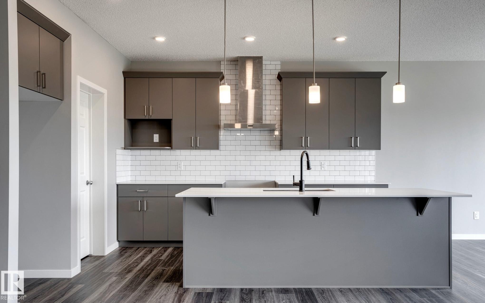 Built by Sterling Homes, this front-attached home in Rivers Edge delivers exceptional flexibility for growing or multi-generational families. A main-floor bedroom sits beside a full 3-piece bath with a glass-door shower, offering rare convenience. The open-concept great room and dining nook are filled with natural light, while the kitchen features quartz counters, a large island, upgraded cabinetry, full-height backsplash, chimney hood fan, built-in microwave, and an adjoining spice kitchen. Upstairs, the primary suite includes a spacious walk-in closet and a 5-piece ensuite with double sinks, a soaker tub, and a glass-door shower. A central bonus room, upper-floor laundry, full bath, and three additional bedrooms complete the layout. With luxury vinyl plank flooring, upgraded railings, a separate side entrance, garage floor drain, and basement rough-ins, this home blends comfort and practicality in a community surrounded by river-valley nature.