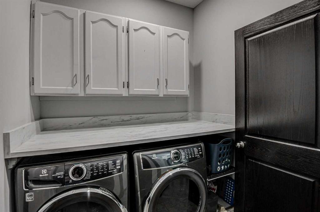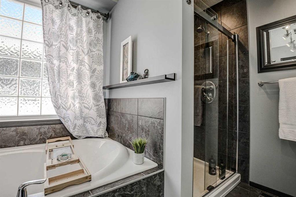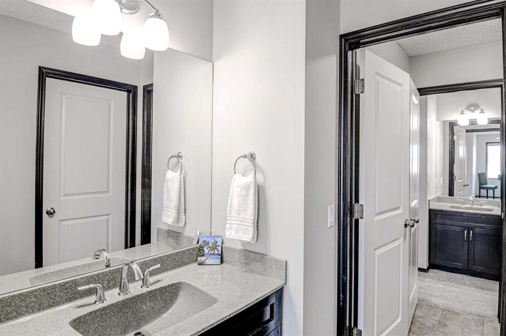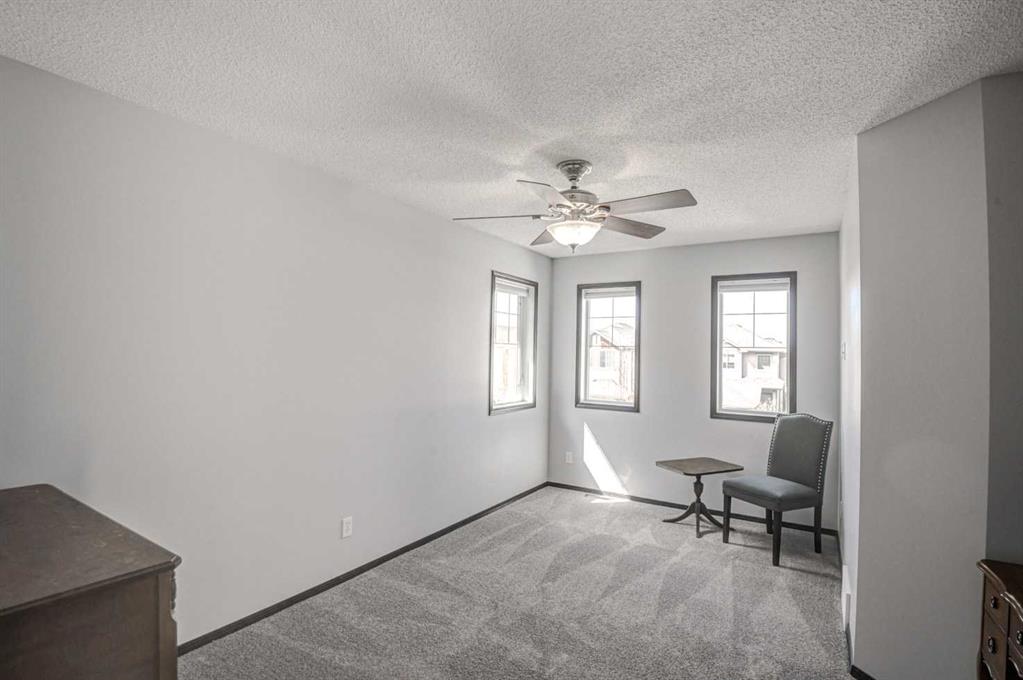 Welcome to 23 Cranberry Circle S.E.—a beautifully appointed and fully developed 2-storey home offering over 3,000 sq. ft. of thoughtfully designed living space in the highly sought-after community of Cranston. This impressive 4-bedroom home is loaded with upgrades and perfectly suited for both everyday living and entertaining. The main floor features a bright, open-concept layout with 9-foot ceilings, rich 3/4" ash hardwood flooring, and solid oak doors. A spacious front office overlooks the streetscape, while the inviting living room showcases vaulted ceilings with wood beams, a stunning floor-to-ceiling stone gas fireplace with log mantle, built-in shelving. The kitchen is sure to impress with quality granite countertops, extended-height oak cabinetry, abundant drawers, a centre island with storage, corner pantry, stainless steel appliances, and ambient cabinet lighting. The adjoining dining nook opens to a sunny south-facing rear deck—perfect for summer entertaining. Upstairs, you’ll find three generously sized bedrooms, including a luxurious primary retreat complete with vaulted ceiling, walk-in closet, built-ins, window bench seating, and a spa-inspired 4-piece ensuite featuring a large soaker tub, and a separate tiled shower. The two additional bedrooms each offer walk-in closets and share a convenient Jack-and-Jill bathroom with private sink areas. The fully developed basement continues to impress with 9-foot ceilings, a large recreation space anchored by a second stone gas fireplace, wet bar, flex room or 4th bedroom, and a stylish 3-piece bathroom with heated floors. Additional highlights include a heated, oversized double attached garage with an 8’ door and ceiling height suitable for car lifts, main floor laundry and mudroom, a newer high-efficiency furnace, central air conditioning and ample built-in storage throughout. Outside, enjoy a low-maintenance yard with extensive decking, a retractable awning, two storage sheds, and paved rear lane access with space for RV or trailer parking—or keep the existing sea-can for added storage. Hot and cold running water in both the back yard and garage! Ideally located within walking distance to Cranston’s many amenities including most levels of schooling, the community centre, Calgary South Health Campus and more, this home offers exceptional value in a family-friendly neighbourhood. A true turnkey property with space, style, and function—this one is a must-see!