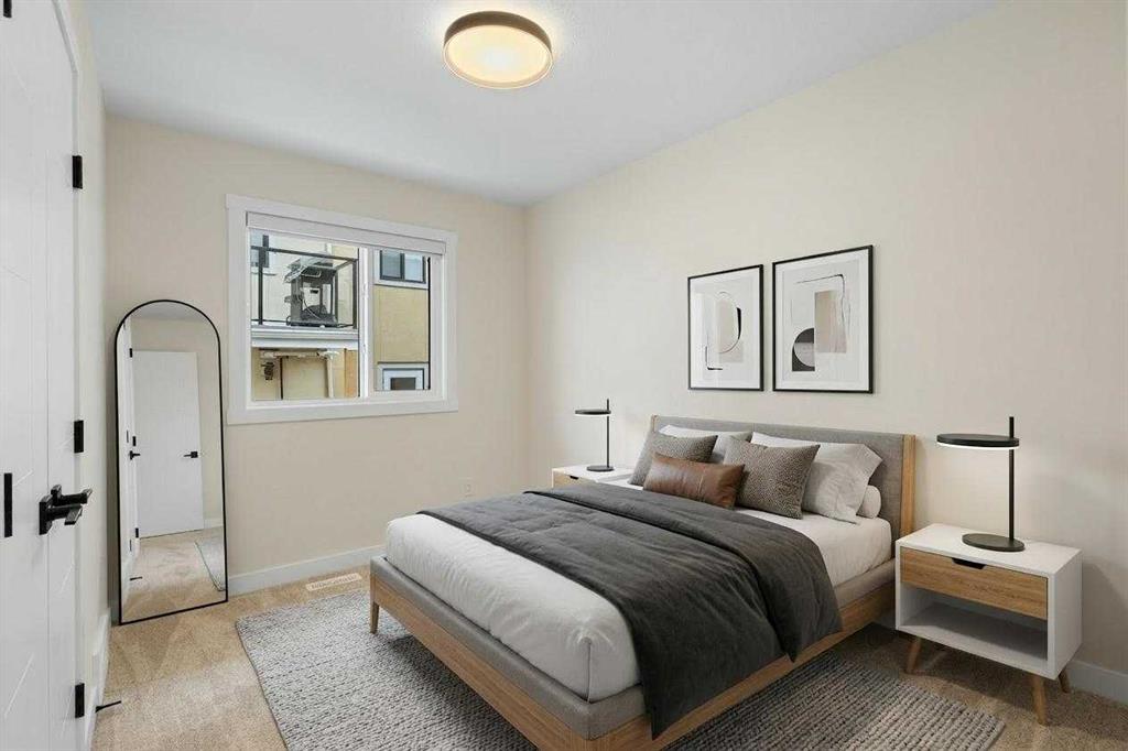 Welcome to Sage Hill Garden, a beautiful townhouse project in one of the most convenient locations in northwest Calgary. This stunning end-unit townhouse offers two storeys plus a fully finished basement, featuring 4 bedrooms and 3.5 bathrooms. South-facing oversized windows fill the home with natural light throughout every level. Thoughtfully designed with both style and comfort in mind, this home showcases elegant wood paneling on the TV feature wall and a beautifully finished accent wall in the living room. The kitchen is finished with quartz countertops and stylish two-tone cabinetry, creating a modern and functional space for everyday living. The fully finished basement adds exceptional versatility, complete with an additional bedroom, a spacious living area with a wet bar, and a full bathroom—perfect for extended family, guests, or extra entertainment space. Ideal for families seeking both convenience and a luxurious lifestyle, this home is within walking distance to Walmart, T&T Supermarket, and Creekside Shopping Centre, and just 5 minutes from Costco. Located in one of the core hub areas of northwest Calgary, this property offers outstanding access to shopping, dining, and everyday amenities.