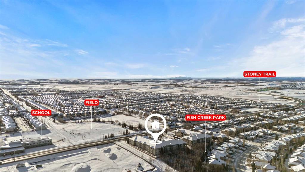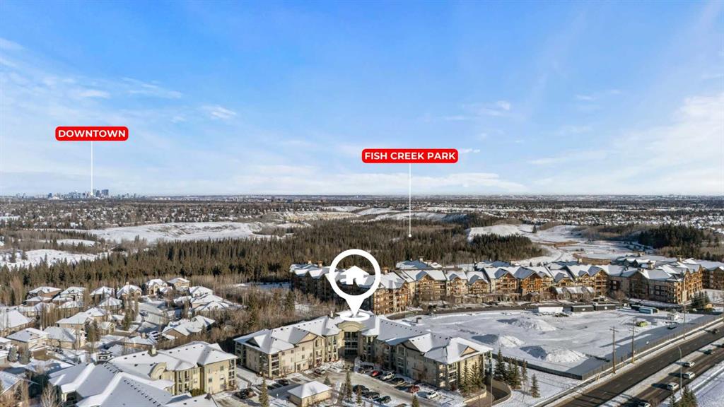 Welcome to this exceptional 3 bedroom, 2 bathroom condo offering over 1,500 sq ft of bright, functional living space in Evergreen. Perfectly positioned backing onto the lush greenery of Fish Creek Provincial Park, this home brings nature right to your doorstep while still being minutes from urban conveniences. Step inside to a generous floor plan featuring a spacious living and dining area, ideal for entertaining or relaxing. Enjoy two private balconies — one off the living room and one off the primary bedroom — both with scenic views of downtown Calgary and parkland beyond. Ample storage space throughout and two titled underground heated parking stalls add unmatched convenience and comfort. Another major benefit: all utilities are included in the condo fees, ensuring predictable monthly expenses and excellent value. Location is truly a highlight — nature lovers will appreciate being steps from Fish Creek Provincial Park, one of Canada’s largest urban parks with hundreds of kilometers of trails for walking, cycling, picnicking, swimming, and year-round outdoor adventure. Easy access to transit, shopping, restaurants, parks, and schools adds everyday convenience, making this condo a perfect place to call home or an outstanding investment. Easy access to transit, shopping, restaurants, parks, and schools adds everyday convenience, making this condo a perfect place to call home or an outstanding investment.