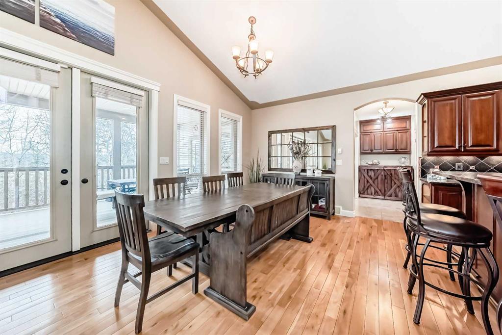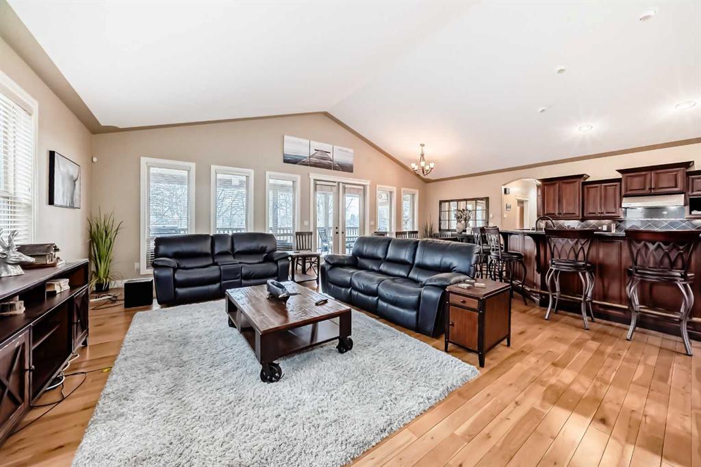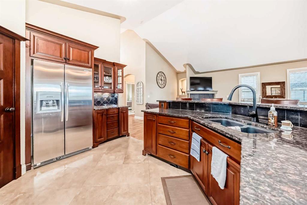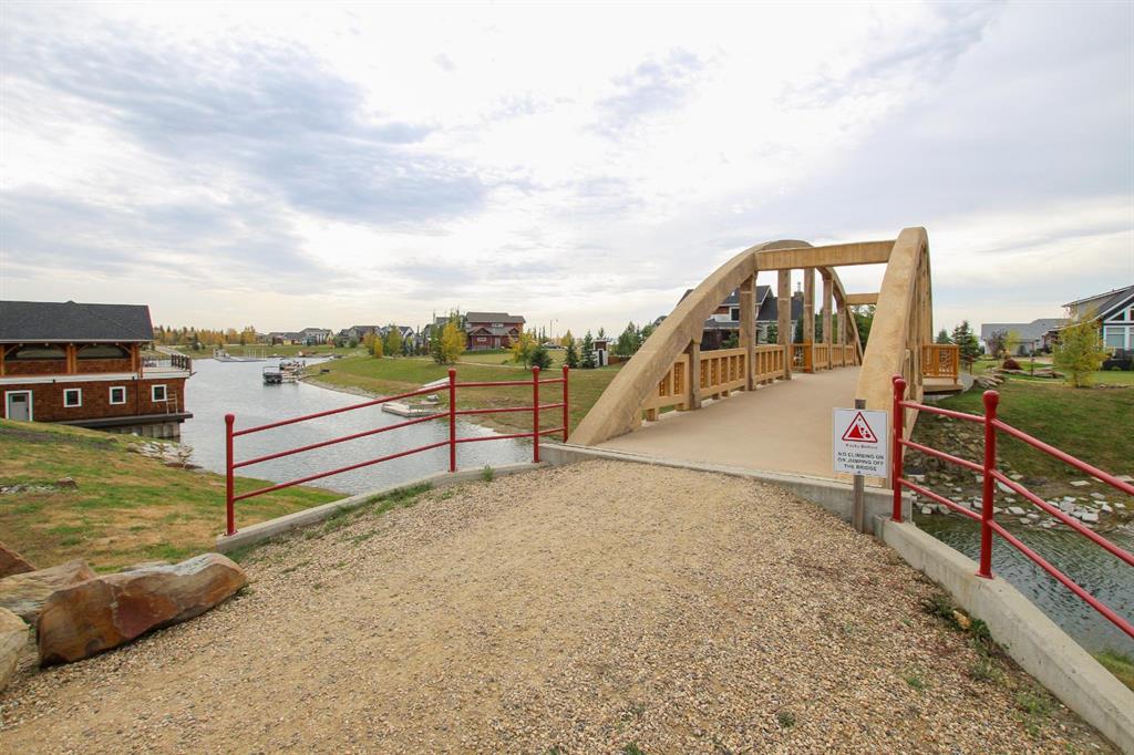 FULLY DEVELOPED 5 BEDROOM, 3 BATHROOM WALKOUT BUNGALOW IN MERIDIAN BEACH ~ LARGE SOUTH FACING BACKYARD WITH MATURE TREES & BACKING ONTO CANAL ~ LOADED WITH UPGRADES THROUGHOUT ~ Covered front entry and a stone accented exterior welcome you to this well cared for home ~ Bright and spacious foyer with high ceilings and tile flooring lead to the open concept main living space with hardwood flooring, soaring vaulted ceilings and tons of floor to ceiling windows that fill the space with natural light ~ The living room features a cozy fireplace and great views ~ The stunning custom kitchen offers an abundance of dark stained cabinets with crown moulding, large drawers and glass fronts; tons of granite space including an island with a raised eating bar; full tile backsplash; upgraded stainless steel appliances; and a large pantry ~ easily host large gatherings in the dining room with patio door access to the covered deck with canal views ~ The oversized primary bedroom can easily accommodate a king size bed plus multiple pieces of furniture or a sitting area, has a garden door to the deck, a spa like ensuite with a corner tub, and a spacious walk in closet ~ Two additional main floor bedrooms are both a generous size with ample closet space ~ 4 piece main bathroom has a tile tub surround, transom window, and granite topped vanity ~ The fully finished walkout basement offers large above grade windows, high ceilings and operational in floor heat ~ Huge family/media room opens to a recreation room with a bar, space for a games table, and garden door access to the covered patio and backyard ~ 2 generous size bedrooms share a 4 piece bathroom ~ Large laundry room plus ample space for storage ~ Heated double attached garage is insulated, finished with painted drywall, has high ceilings and two overhead doors ~ Large paved driveway offers tons of additional parking with space for RV/boat parking ~ The fully fenced backyard is landscaped with mature trees, has a fire pit and direct access to a walking trail, spring fed canal and boat dock ~ Located in Meridian Beach, with two sandy beaches, nature trails, architecturally unique footbridges, community halls, tennis/pickle ball courts and pavilions with year round activities ~ Easy access to Rimbey, Ponoka, Lacombe and Gull Lake.