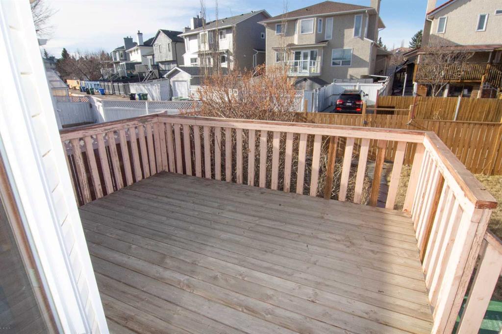 Nestled in the heart of the desirable Sandstone area, this well-maintained bi-level home boasts a warm and inviting layout perfect for the family . The cozy family room features a wood burning fireplace, that's sure to become a favorite gathering spot. The spacious kitchen is equipped with oak cabinets and offer direct access to the private deck, where you can enjoy the afternoon sun. The south facing backyard is a lovely spot to relax, The upstairs level features three generous bedrooms, including a bright master bedroom with an ensuite and a full bedroom, additional features include a front drive double garage, and recent upgardes such as a new furnace ( 2016), water tank (2020), roof (2025), and luxury vinyl plank flooring in the kitchen and front foyer ( 2026). The enire house has been freshly painted (2026). All Poly -B has been removed from the property ( 2026). The lower level offers laundry facilities and an unfinished area provides outstanding flexibility , develop it later to suit your needs. This home is conveniently located within walking distance to Public and Catholic elementary schools, tennis courts, and an outdoor skating rink, with easy access to major routes, shopping, and amentities.