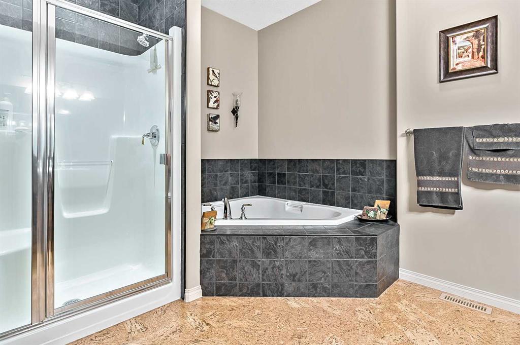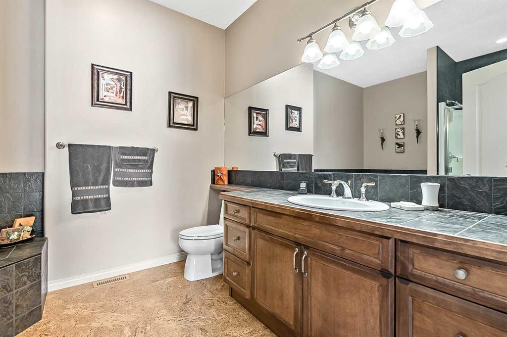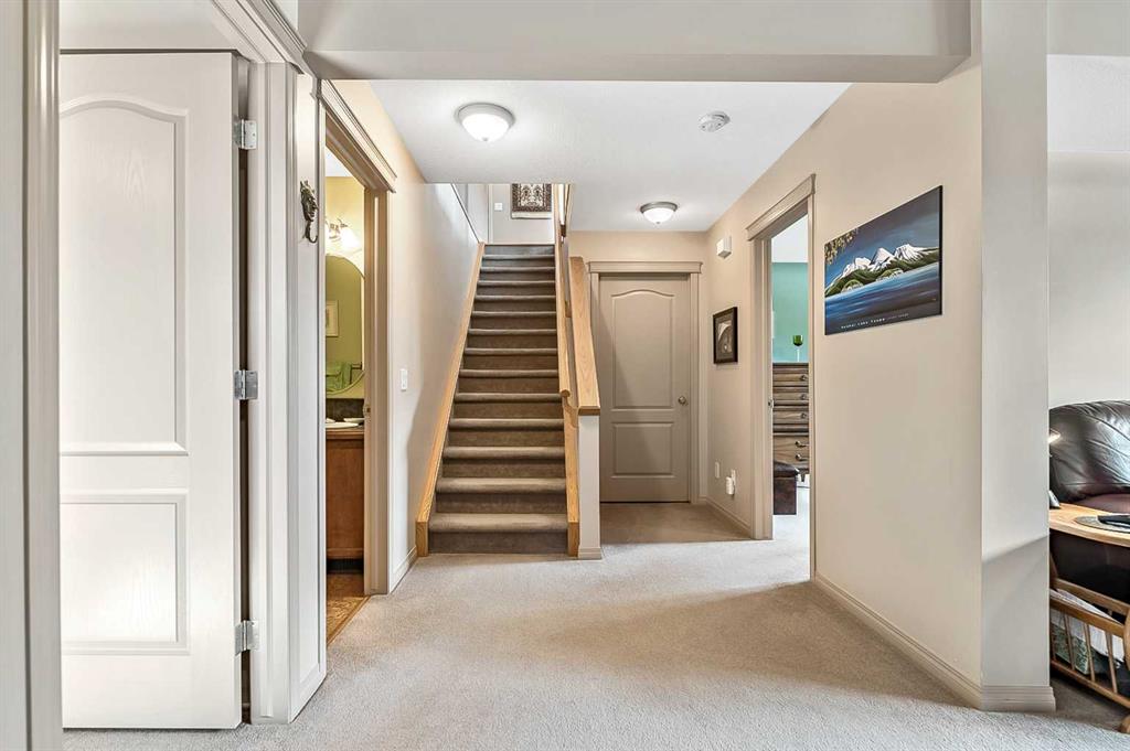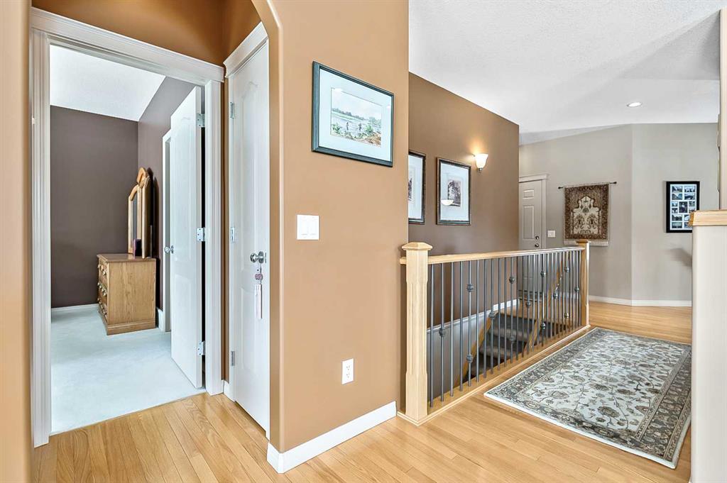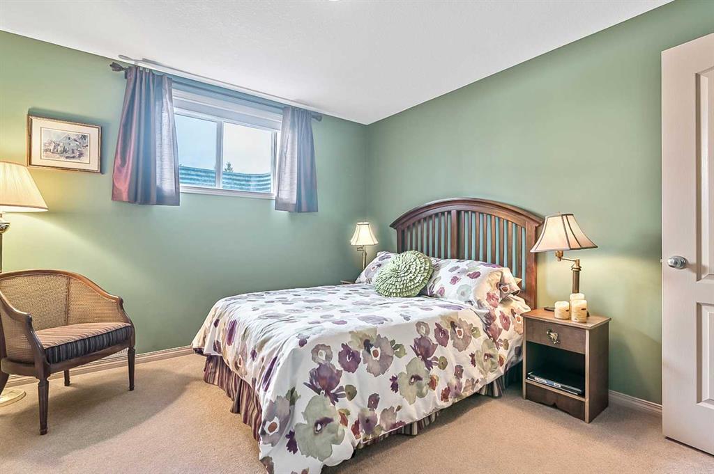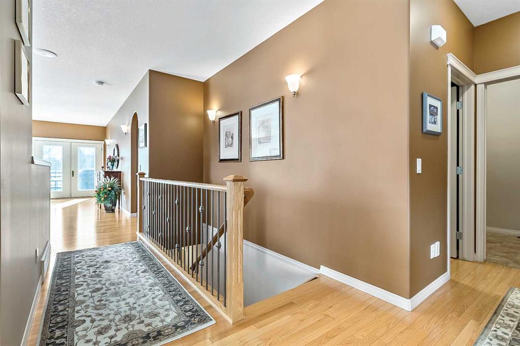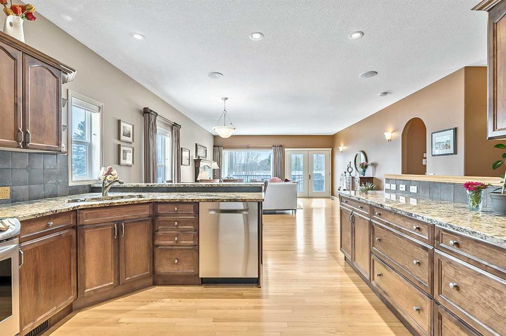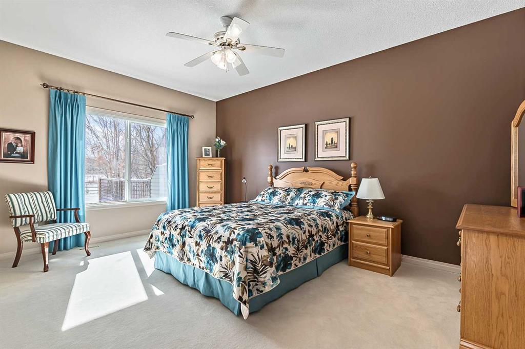 You truly can’t beat this outstanding location. Enjoy breathtaking views as far as the eye can see from the south-facing backyard, perfectly positioned for sunshine and privacy, in this beautiful adult villa complex. Ideally located just steps from the Turner Valley Golf Course in a quiet community cul-de-sac, this home offers both serenity and convenience. The main level features a bright open floor plan with gleaming hardwood flooring and 9 foot ceilings. The stunning kitchen is superbly finished with granite countertops, rich alder mocha-stained cabinetry complete with crown moldings, walk-in pantry, and stainless appliances. This open concept boasts generous sized great room with gas fireplace and is loaded with large windows letting in the natural light making it perfect for both everyday living and entertaining. A Bose sound system throughout the home adds comfort and atmosphere. The Main floor Primary bedroom is large enough to accommodate your king size bed with custom closets and boasts Spa-like ensuite. The fully developed basement boasts a spacious family room with gas fireplace and features plenty of room for gatherings, hobbies, or a home theatre, along with abundant storage space. Step outside to a professionally landscaped yard featuring a beautifully installed patio, underground sprinkler system, and one of the largest pie-shaped lots in the area—perfect for enjoying the peaceful surroundings. This home offers a rare combination of privacy, space, thoughtful upgrades, and an exceptional location.