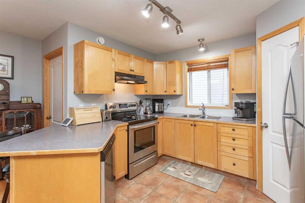 Nicely kept two story home offering full basement develop and an over size double car garage. Ideally located within a quiet close plus adjacent to small playground this home would be ideal for a young family getting a start in the market. Welcoming front entrance is complimented by a covered porch area leading you into the tiled entry way with large coat closet. A bright front sitting room offers large south facing picture window which pours in the natural light. Hardwood floors throughout keep allergen's down and also make for ease of maintenance. Excellent size kitchen space is attractively designed with plenty of counter space, a full surround of maple cabinets and drawers, updated stainless steel appliances as well as a deep corner pantry. A great size dining area is perfect for family gatherings or guests to attend which also has patio doors leading out to the back yard space. Convenient main floor laundry plus a separate two piece powder room complete the main floor space. Three bedrooms on the upper level with laminate style flooring. The Primary offers a huge walk in closet with a window for some natural lighting. Full four piece main bath with banjo counter and tub surround. The developed basement is a great extension of living space offering a generous media room perfect for creating a home theater space. Massive teenager size guest bedroom plus an additional four piece bath. Storage closet plus additional space in the utility room as well as under the stairs for your seasonal items. Enjoy the fully fenced and landscaped backyard any time of the year. Either sitting on the large back deck or down on the patio area both are comfortable and private for your own simplicity. The oversize 24x26 detached garage with 10ft ceilings makes for a value added feature. Providing secure options for vehicle parking, additional storage or creating a home work shop space you can determine the course plus still have yard space left over to utilize. Schools within the area plus light neighborhood shopping plazas add for some amenities plus a beautiful walking path only steps around the corner.