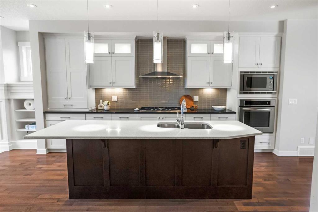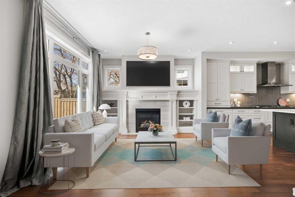 Presenting a show-home worthy residence, this rare, three-storey infill offers over three thousand square feet of elevated living, show-casing exemplary millwork, architectural brilliance, and a design so exceptional, its simply unparalleled. Built in a time of quality craftsmanship, this property exudes opulence, with premium selections, and a palette that compliments every era, a true classic, that transcends time and trends! The sophisticated exterior has notable curb appeal and is enveloped with stunning stone and stucco details and an aggregate walkway, a fitting nod to the quality within. The sunlit foyer invites you with a plethora of natural light, illuminating the stunning, maple floors. A lavish dining area is situated at the front of the residence, awaiting intimate moments with loved ones. The chef-inspired kitchen is extraordinary, with an extravagant island as the showpiece! This designer kitchen is thoughtfully curated with contrasting cabinetry and quartz, in light and dark tones, offering brilliant dimension. This culinary retreat has a state-of-the-art appliance suite and is framed with stunning, full height shaker cabinetry, further elevated by crown moulding and sophisticated glass front curio cabinets. The lovely family room features a gas fireplace surrounded by gorgeous built-ins as its focal point. This open-concept design invites effortless entertaining. Step through the mudroom, outfitted with built-ins, and into the southwest facing, backyard. The private outdoors is enhanced by a beautiful aggregate patio, so you can dine alfresco, while unwinding in the evening sun. Ascend the spiral staircase, and into the spacious primary suite, which has a boutique worthy dressing room and a five-piece spa. The spa has dual vanities with quartz, a soaker tub, walk-in shower and a regal double-sided fireplace. The second storey has two more generous bedrooms with ample closet space and a luxurious four-piece bath. The true ‘piece de resistance’ is the magnificent third storey! This level is designed as an inspiring bonus loft with park views, which could be imagined as an office, gym, kids’ area or bedroom – the possibilities are endless! This infill is nestled within the prestigious enclave of homes in Banff Trail and the third storey ensures the best of both worlds - a lifestyle of urban convenience without compromising on space! Down the stairs, the lower level, is dreamy for guests or teens alike, with a generous family room and an expansive fourth bedroom with a large walk in closet and private three-piece ensuite, your guests will want to stay awhile! This residence is in a coveted area, close to transit, top-rated schools, amenities, shopping and the University of Calgary. Downtown is just a short commute, while living on the city’s west side means weekend escapes to the Canadian Rockies. This captivating infill is waiting for a connoisseur of fine living to call it home! **Watch Video ** Open House Sunday April 26th 1:00-3:00pm.