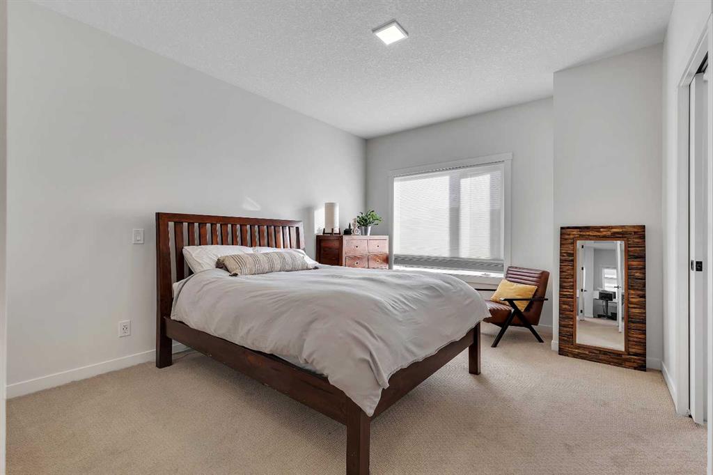Welcome to Artis in Greenwich — a luxury townhome collection located in one of Calgary’s newest master-planned community. Greenwich spans 59 acres in NW Calgary and blends brownstone architecture with boutique urban living. Home to the Calgary Farmers’ Market West, the community offers an impressive selection of cafés, restaurants, walking paths, parks, and stunning views of WinSport and the Rocky Mountains. This townhome features 1,562 sq ft of thoughtfully designed living space, including a double-primary bedroom layout, a ground-level flex room with a full bathroom, in-floor heating, and a double attached garage. The ground level offers 268 sq ft with a spacious foyer, a versatile flex room currently used as a gym, a 3-piece bathroom, and direct access to the garage. The main level provides 637 sq ft of open-concept living with a bright kitchen, dining area, and living room. The upgraded kitchen package includes sleek white cabinetry with black hardware, stainless steel appliances, gas stove and a designer hood fan. The striking black herringbone-patterned tile backsplash frames the stove area beautifully, creating a focal point balancing the lighter elements of the kitchen. A large island with undermount sink and sleek chrome faucet creates a comfortable seating area to enjoy quick meals or is the perfect gathering spot. From kitchen, step onto the deck equipped with a gas BBQ line. The laundry room is just off the kitchen. The living room is warm and inviting with south-facing windows, an electric fireplace with brick surround, and access to a second balcony which is south facing and overlooks the central courtyard. Upstairs, you’ll find and additional 657 sq ft with two spacious primary bedrooms, each with its own ensuite — one a 5-piece and the other a 4-piece. Additional upgrades include glass panels on stairwells, undermount sinks with full-height tile and mirrors in the bathrooms, upgraded lighting and window coverings, and air conditioning. The double attached garage includes 2 wall heaters and opens up to a off-street double parking pad. The exterior showcases timeless brownstone styling with James Hardie siding, full brick accents, and stucco finishes, offering durability and low-maintenance living. Greenwich’s location is exceptional — just 20 minutes to downtown, quick access north or south, and under an hour to Canmore and Banff. With parks, playgrounds, and the Farmers’ Market within walking distance, this is urban-inspired living at its best. The sellers have been fortunate to have an excellent tenant in place, who is willing to remain should the buyer wish to purchase the property as an investment.
