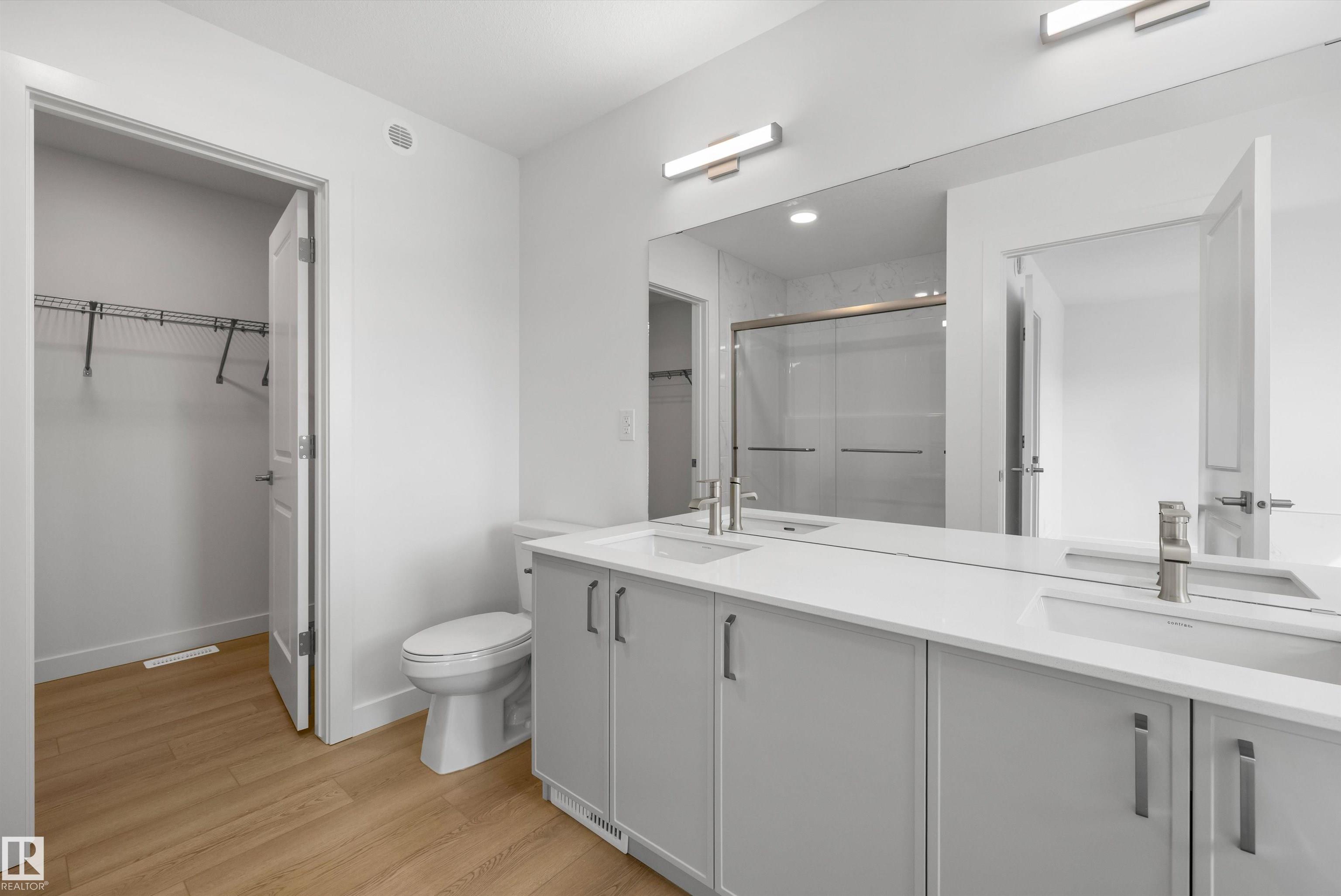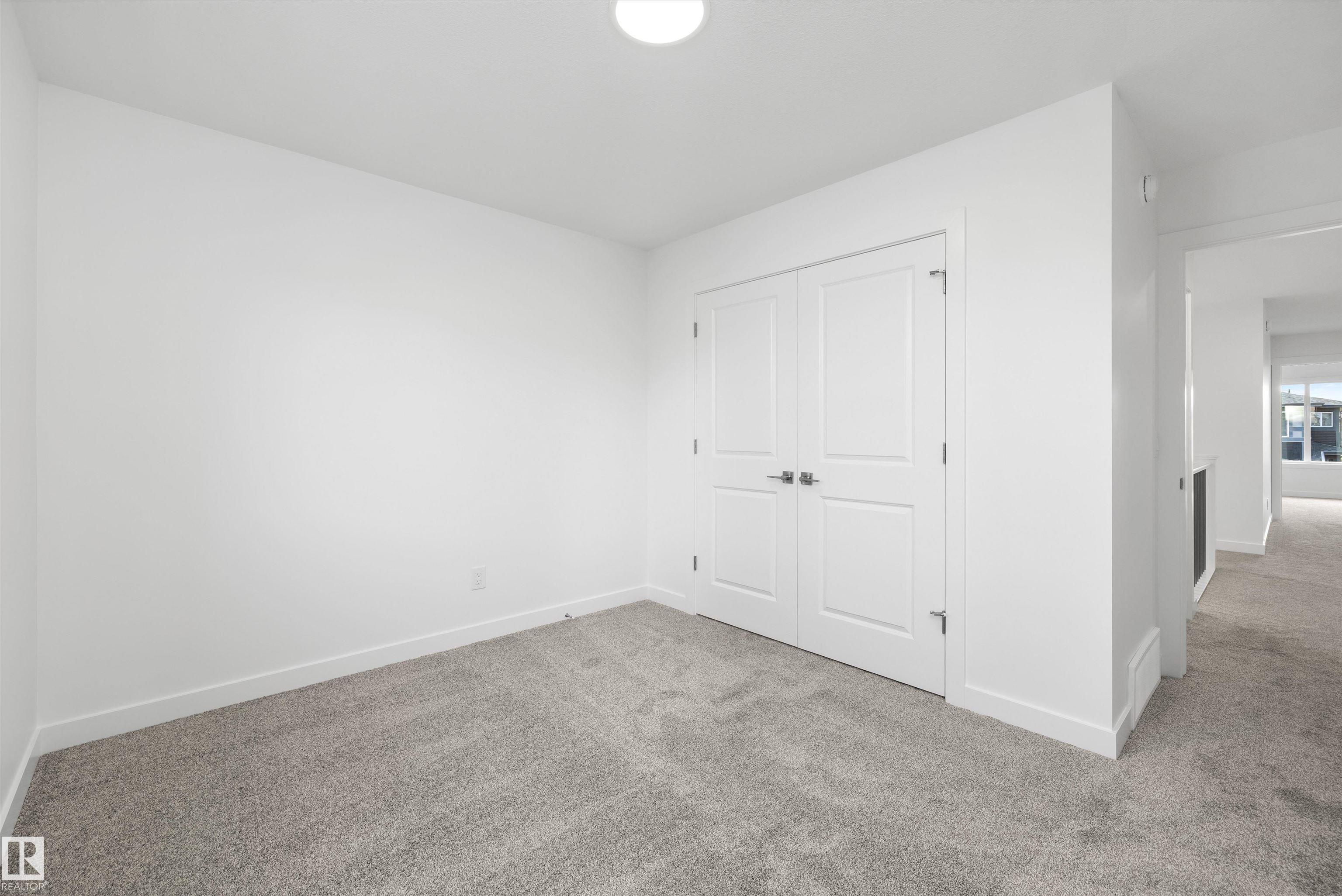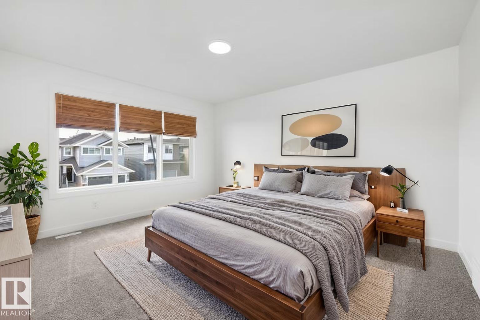Built by Sterling Homes, this front-attached home offers bright, flexible living on a desirable corner lot. Triple pane windows and 9’ ceilings create an airy main floor that includes a convenient full bath and bedroom—ideal for guests or extended family. The kitchen features quartz counters, a large island, upgraded cabinetry, a chimney hood fan, a built-in microwave, a full-height backsplash, and a pantry. The great room’s electric fireplace and large windows make the space feel warm and inviting, while a patio door leads to the backyard. Upstairs, the primary suite includes a spacious walk-in closet and a 5-piece ensuite with double sinks, a glass-door shower, and a soaker tub. A central bonus room, full bath, laundry room, and two additional bedrooms complete the layout. With luxury vinyl plank flooring, upgraded railings, a separate side entrance, a garage with a floor drain, and basement rough-ins, this home blends comfort and practicality in a scenic west-end community.