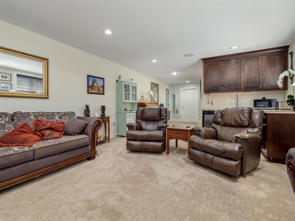 Designed with both function and family fun in mind, this exceptional home offers an ideal blend of comfort, space, and style. All new quartz through out the home with brand new undermount sinks, new faucet in the kitchen. New flooring on main level and by second kitchen on the lower level. Laundry room on second level for easy access. Featuring a sunroom, mudroom, over 550 sq. ft. of outdoor decking, and a second-level theatre room with a zoned sound system, it's ready for that special family to move in and make memories. With 4 spacious bedrooms and 4 bathrooms, this home offers plenty of room to grow. Enjoy the convenience of two family rooms, a heated double-car garage, and an extra-large front driveway—perfect for gatherings or multi-vehicle households. Comfort and quality are evident throughout with a high-efficiency furnace, in-floor heating in the ensuite and lower-level bathroom, and thoughtful extras like underground sprinklers and a gas BBQ hookup. All appliances are less than 2 years old. Six person hot tub in the back yard which with no neighbors directly behind you creates a very quite soak. Whether you're relaxing in the theatre room, entertaining on the deck, or enjoying quiet mornings in the sunroom, this home delivers in every way. Easy to show and ready to impress!