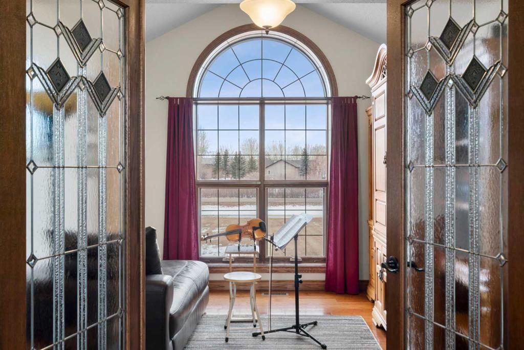Welcome to this exceptional custom-built bungalow set on 2.79 acres in the peaceful community of Butte Hills. Offering 2,763. sq ft of thoughtfully designed living space on the main floor and a fully developed basement of equal size! This one-owner home is ideal for families seeking comfort, space, and a quiet lifestyle surrounded by beautiful views. Constructed with insulated concrete from footints to roof trusses for superior energy efficiency and superior soundproofing, the home showcases soaring ceilings and expansive rear-facing glazing that fills the interior with natural light throughout the day. The bright, open-concept main floor is perfect for gathering, featuring a spacious living room anchored by a stunning floor-to-ceiling stone gas fireplace, a well-appointed kitchen, and a dedicated den for work or study. Wide doorways and accessible design enhance long-term comfort for families at every stage. The fully finished basement offers additional living space with in-floor heating, ideal for guests, teenagers, or extended family. Mechanical highlights include a 2026 installed boiler system, central air conditioning (2021), a water softener, battery backed up sump pump, and a recently inspected septic system. Outdoors, enjoy a west facing composite front deck or a private rear dura-deck with a cedar screened-in porch—perfect for relaxing while taking in the surrounding countryside, natural gas line and large BBQ included!. The triple attached garage features in-floor heating, a separated shop area with an overhead heater, and ample space for vehicles, storage, and hobbies. Located just minutes from Airdrie and Calgary, and in close proximity to major shopping and amenities in Balzac, this property offers the perfect balance of quiet acreage living and everyday convenience. The home is serviced by Calgary city water via the Rocky View Water Co-op, adding further peace of mind. With school bus service to Airdrie and a welcoming, scenic setting, this is a rare opportunity for families to enjoy space, privacy, and a strong connection to nature without sacrificing accessibility.