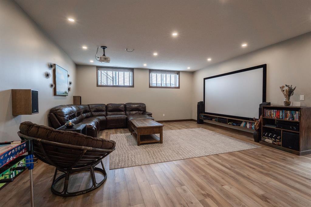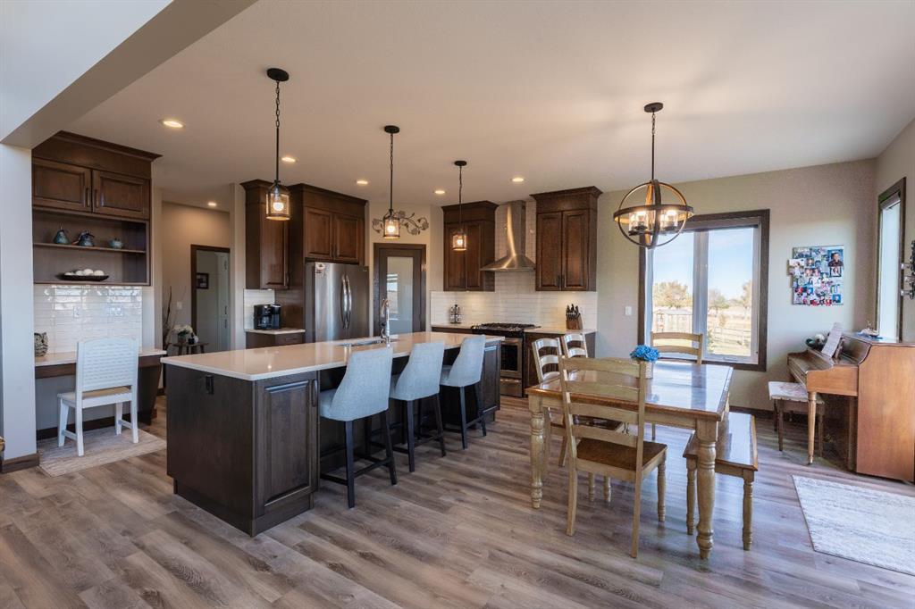 Welcome to your private countryside estate! Offering 19.6 acres with gorgeous views of the Alberta prairies and just 8 minutes from Red Deer, this 4662 sq ft custom home was masterfully built for those who value craftsmanship, comfort, and space to roam. The property is fully fenced with approximately 15.6 acres of pasture land, and 4 acres of beautifully landscaped yard space on the home site. Outside you'll find a 28x36' heated shop with epoxy floors, as well as a 49x35' quonset with concrete floor, and both buildings have newer overhead doors as well as all new tin siding and roofs. The stunning custom 2 storey home offers space for a large family with 5 bedrooms, 4 bathrooms, hard floors throughout (no carpet), 9' ceilings, and a stunning wide open living space that you'll love to entertain in. The living room is a show piece with floor to ceiling windows that span up to the 2nd floor, a gas fireplace, and beautiful built in cabinetry and lighted shelving. This space is open to the kitchen which features timeless raised maple cabinetry, quartz counter tops, a large island, corner pantry, and stainless steel appliances including a gas stove. The large dining space opens up to the back deck through double garden doors, and you'll love the prairie views through the abundance of windows throughout the space. The large primary bedroom is located on the main floor and enjoys a huge walk in closet and private 5 pce ensuite with dual vanities, a large soaker tub, and custom tiled shower. The main floor is completed with a beautiful laundry room with custom cabinetry, folding area, and a sink, and a separate 2 pce powder room. Upstairs you'll find two large kids rooms that share a 4 pce bath and a bonus room/loft area perfect for a kids playroom or office space. The basement enjoys cozy in-floor heat throughout and has a huge family and rec room area with surround sound and projector wiring, large gym space with tray ceilings, and two huge bedrooms that share a 4 pce bath. The massive attached garage is heated with in-floor heat and offers a ton of storage space as well as parking for large vehicles. Other features in this home include an ICF foundation, triple pane windows, powered gate at the driveway, and there are 2 wells on the property. This property shines with pride of ownership throughout and has been meticulously cared for by the current owners. This home is an absolute pleasure to show.