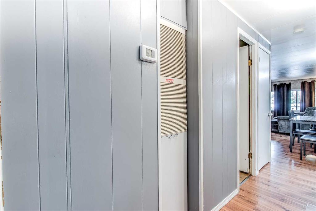 Move-in ready and well cared for, this 3-bedroom mobile home offers great space and updates throughout. An addition expands the living area and includes a large, heated, and versatile front entry with a coat closet. Inside, the open-concept main living area features a comfortable living room and a functional kitchen with oak cabinets, a full appliance package, a dining space, and a handy pantry or storage closet. The primary bedroom is a good size with a walk-in closet. Two additional bedrooms and a 4-piece bathroom complete the layout. The bathroom has been refreshed with updated flooring and vanity and includes a washer and dryer for added convenience. Outside, you will find a large, fully fenced yard with two generous storage sheds and a raised garden box. Additional features include central air conditioning, mostly upgraded windows, a heat tape replaced two years ago, and some fresh interior paint. Do not miss out on this move-in-ready, affordable home! Call today to book your viewing.