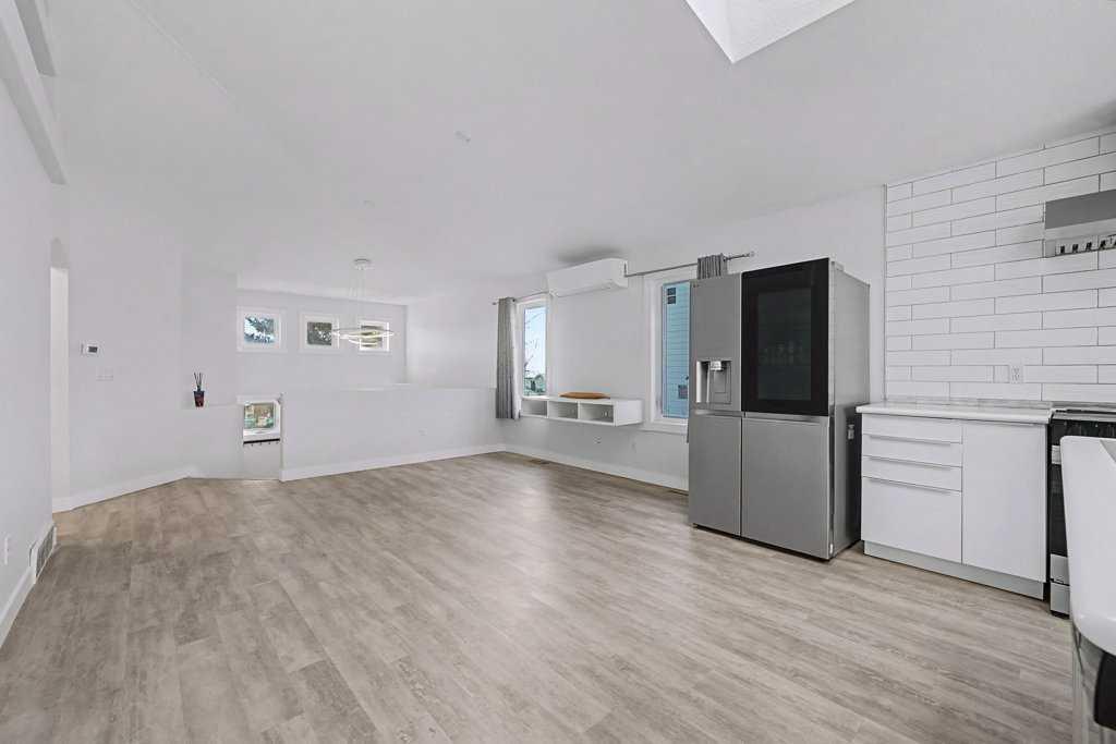 Such a unique "one-of-a-kind" home..... 5 bedroom, 3 bathroom home with recent renovations - backing onto Green Space - Sunny West Exposure with a large deck! Nearly 2200 sq. ft. of "Air Conditioned" comfort - includes a 2 bedroom basement Legal Suite! Be welcomed into the spacious "open plan" design with soaring vaulted ceilings with a large skylight throughout the living room, plus all new windows throughout this home! Much natural light abounds here! All wide vinyl plank flooring on main level! The chef's gourmet kitchen boasts newer white lacquer smooth-finish cabinetry with quartz counters and large island with a stainless steel under mount sink, new backsplash, new high-end fridge and new stove, stylish hood fan, plus Bosch stainless steel dishwasher. The "eat-in" kitchen nook also provides adjacent access to the sunny west fibreglass deck! This unique home offers a spacious main level master bedroom with a 4 pc ensuite - plus walk-in closet, 2 additional bedrooms and another full 4 pc bathroom, plus a main level laundry. The 2 bedroom basement legal suite offers 2 bedrooms, a full 4 pc bathroom, large living area, separate laundry room, plus storage area. The greenhouse offers the perfect garden oasis, the fire pit and apple trees add to the overall ambience and this lot has privacy galore. New roof and new hot water tank. Double attached front drive garage, plus an oversized driveway for 3 cars! Quiet crescent location within walking distance to Transit #3301, Schools, Park, Movie Theatre , Vivo, Superstore and all amenities.