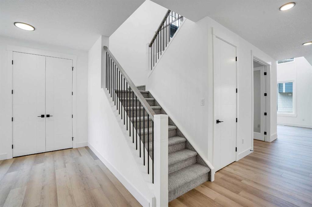 Welcome to the community of Heritage Hills in Cochrane. This beautiful home built by Canbrook Homes has amazing finishes throughout with 3 bedrooms and 2-1/2 bathrooms, with approximately 2348sq/ft of developed space. The main floor features a large open concept with 9ft ceilings, an office, and vinyl plank flooring. The living room has large windows with the ceiling open to above with a beautiful chandelier with a gas fireplace and open concept design to the kitchen and dining area. The kitchen has quartz countertops and features a Samsung Appliance package with a large walk through pantry through the mudroom. The upper floor has a large primary bedroom with an attached 5 piece en-suite with dual undermount sinks, quartz counter tops, tile flooring, soaker tub and standing shower, and large walk-in closet. The upper floor has 2 more additional spacious bedrooms with walk-in closets and a 4 piece bathroom, with the laundry room conveniently located on the top floor, you also have a large Bonus Room centrally located. The basement has a side entrance and already has plumbing roughed in for your development. Enjoy your triple car garage with extra space for storage and parking. This home is conveniently located close to shopping, parks, with easy access to Highway 1A and 22X. Contact your favorite agent to schedule your showing today!