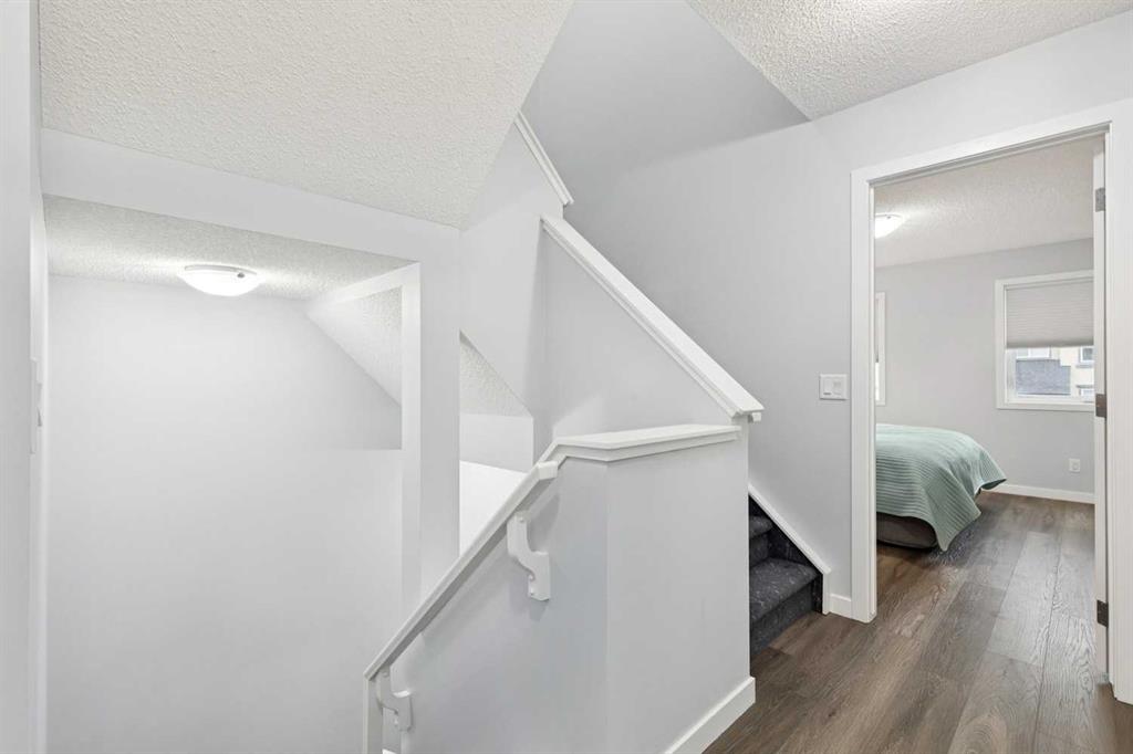 OPEN HOUSE - Sunday April 19, 12:30-2:30 - This unique two-and-a-half storey home in the heart of Mahogany offers the perfect blend of space, function, and style. A large, welcoming front porch sets the tone, leading into a spacious foyer with a practical pony wall that keeps everyday clutter tucked away from the main living space. The living room is warm and inviting with a gas fireplace, large windows that fill the home with natural light, and tasteful floating shelves that add character. The open-concept layout continues into a generous dining area, ideal for family meals or entertaining, and flows seamlessly into a bright kitchen featuring a large U-shaped counter, full-size appliances, pantry storage, and modern cabinetry accented with stylish gold details. Just around the corner, a convenient half bath and access to the fully fenced backyard make daily living easy, while the large deck and rear parking pad for two vehicles add even more functionality. Upstairs, the first upper level offers three bedrooms, including a primary retreat with a walk-in closet and private ensuite, while the other two bedrooms share a 4pc guest bath. Laundry on this floor also adds utmost convenience for families. The top floor creates a standout private space with an additional bedroom, full bathroom, and a versatile den—perfect for a playroom, home office, or quiet retreat. Recent upgrades, including new EVP flooring on the second and third floors (2025) and new carpet on the stairs (2025), bring a fresh, modern feel throughout. The unfinished basement is ready for your future vision. Living in Mahogany means access to one of Calgary’s most sought-after lake communities, known for its beautiful pathways, vibrant amenities, and year-round recreation. Residents enjoy exclusive lake access, nearby schools, shopping, dining, and an active, welcoming neighbourhood atmosphere that makes it easy to feel at home.
