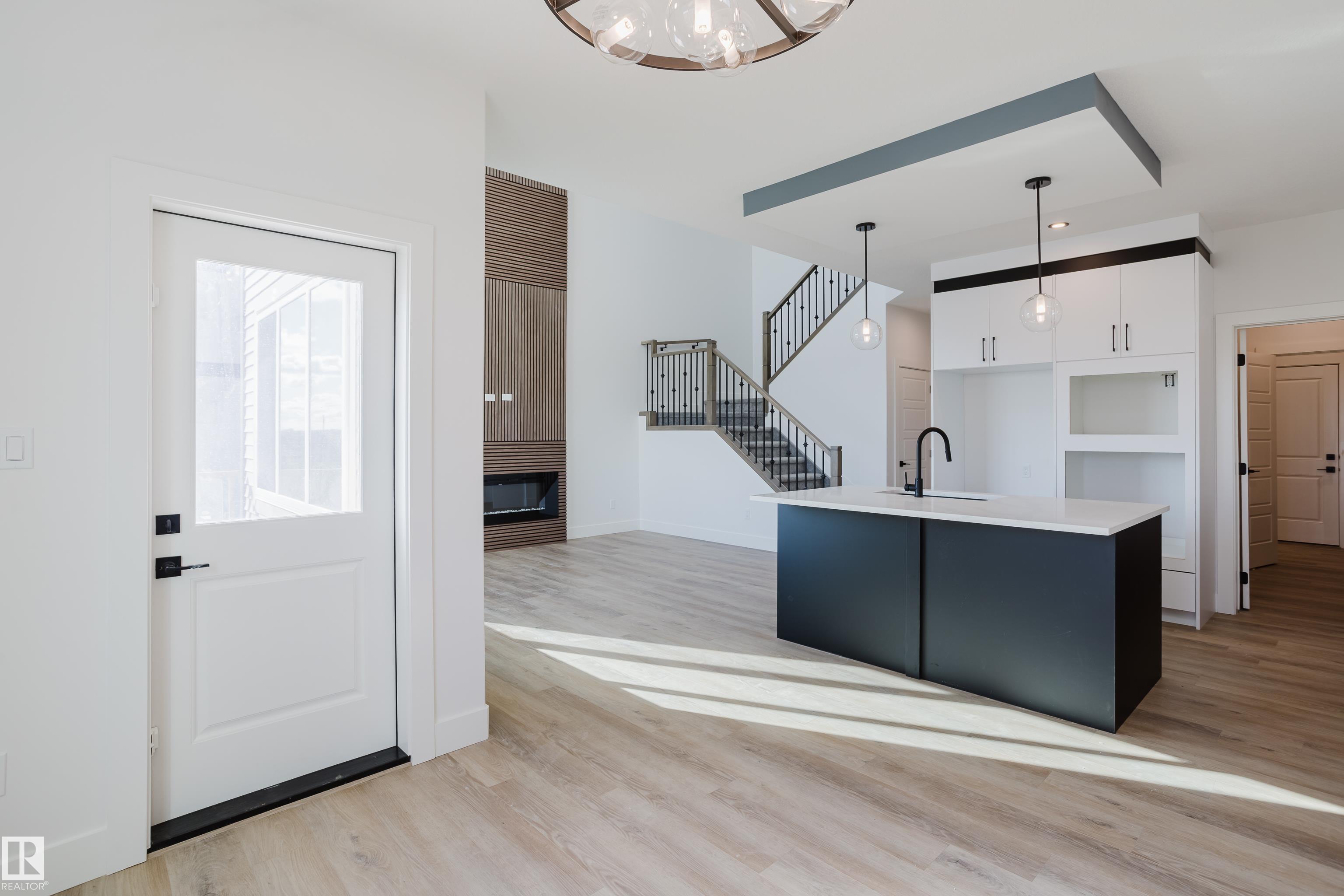 Brand new home in the desirable Uplands community, backing onto a serene pond with stunning views and a walkout basement. This beautifully designed property features a full bedroom and bathroom on the main floor—ideal for guests or multigenerational living. The open-to-above living room with a cozy fireplace adds a touch of elegance and warmth, flowing seamlessly into the modern kitchen and convenient spice kitchen. Upstairs offers four generously sized bedrooms, including a luxurious primary suite, plus a spacious bonus room perfect for a home office, media room, or play area. Enjoy outdoor living with a deck off the dining room, perfect for entertaining or relaxing while overlooking the peaceful water. A rare opportunity to own a thoughtfully designed, move-in-ready home in one of Edmonton's most sought-after neighborhoods!
