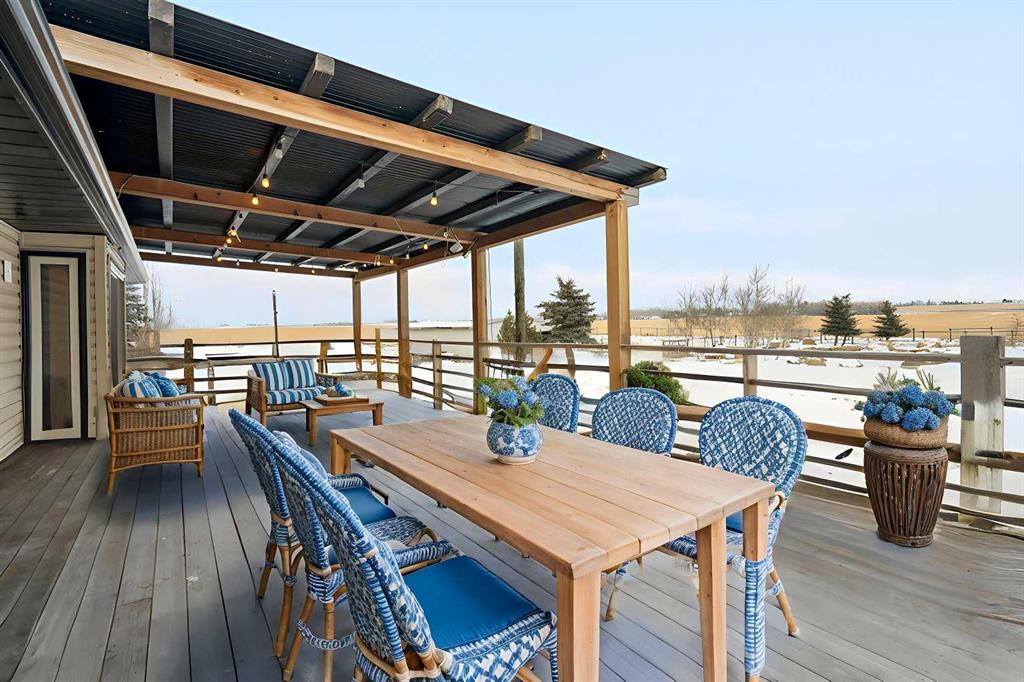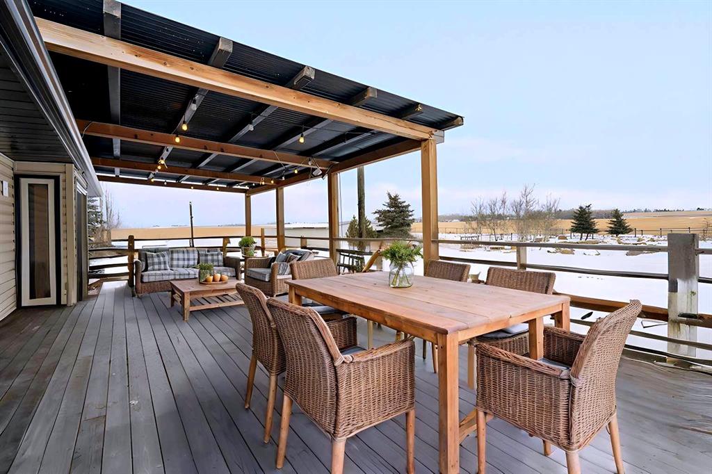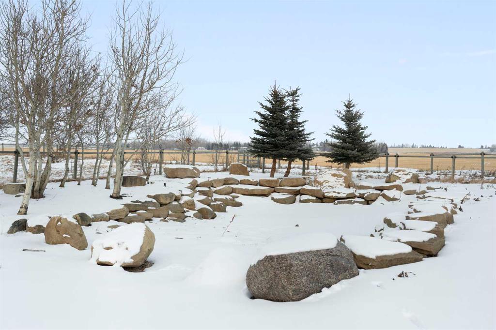 Welcome to a fantastic 5-ACRE opportunity with a residence—experience the charm of countryside living just minutes from Calgary’s city limits! This unbeatable location offers a practical blend of space, functionality, long-term value, and the privacy of acreage living—situated just minutes from Stoney Trail, Métis Trail, and the rapidly growing Cornerstone Plaza, with shopping, restaurants, and everyday amenities. A private gated entrance opens onto a fully paved, tree-lined driveway, surrounded by mature evergreens and featuring two newly added apple trees, creating a clean, private, and welcoming approach to the home. The 5-bedroom bungalow boasts a WALKOUT basement, an upgraded kitchen with a sliding patio door for seamless indoor-outdoor living, refreshed bathrooms with spa-like steam showers in the ensuite. The WRAP-AROUND deck is perfect for entertaining friends and family with BBQs or special events while enjoying serene countryside views. An accessible ramp adds functional outdoor living convenience. The property also features a tranquil pond, a productive VEGE-Garden, and a dedicated dirt playground perfect for kids to play safely outdoors. A large BARN/outbuilding currently serves as an oversized garage and workshop—offering ample space for equipment, storage, hobby farming, or future plans. Zoned R-RUR (Rural Residential), this parcel offers flexibility and long-term stability for families, acreage buyers, or investors seeking land in a high-growth corridor. With excellent access to major roadways and city amenities, yet surrounded by open space, privacy, and nature, this spacious acreage combines practical day-to-day living with strong future potential. Don’t miss this opportunity to secure 5 acres in one of Rocky View County’s most desirable and fastest-growing areas.