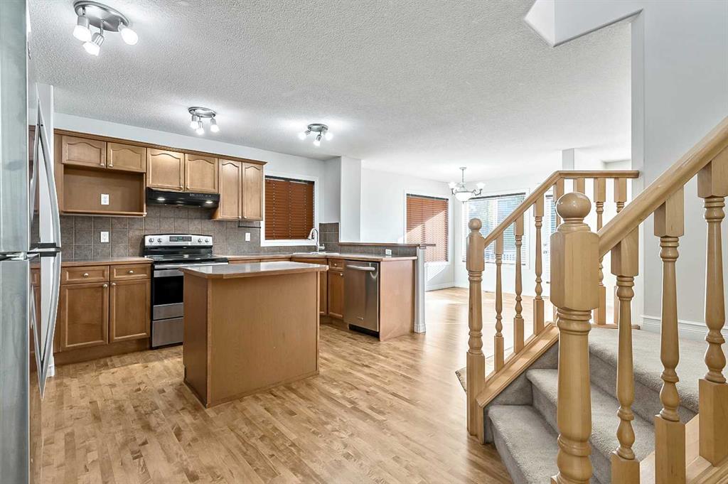 Home has just been freshly painted, new flooring was installed in the lower level stairs and complete lower level plus the hardwood floor has been resanded. Located in the sought-after lake community of Crystal Shores, this fully developed family home backs onto a greenbelt and walking path, offering both privacy and easy access. Featuring an exceptional bonus-room floor plan, the main level boasts a stylish kitchen with maple cabinetry, a central island, and an open layout flowing into the spacious great room with a cozy gas fireplace. Convenient main-floor laundry is perfectly situated for busy households. Upstairs, the turned stairwell leads to three generous bedrooms, including the primary suite with a 4-piece spa-like ensuite featuring a corner soaker tub, separate shower, and walk-in closet. A large bonus room and another 4-piece bath complete the upper level. The professionally developed lower level adds even more living space, with a huge family room and custom built-ins, an additional bedroom, and another 4-piece bathroom. Shingles were replaced in 2021. Steps away from elementary school and lake area. This home is available for quick possession—move in and enjoy lakeside living just in time for the season!