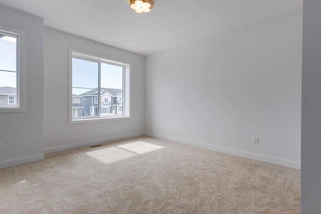 Brand new the No condo fee 'TALO' town floorplan by Rohit Homes, with unmatched design interiors and striking exteriors to create elevated living. Featuring 1500 sq ft, 3 bed/2.5 bath + Bonus. Note: This unit has not yet started construction. All Perfectly located In SE Calgary's 'Sora in Hotchkiss', close to a park, featuring a pond, paths, easy access to major highways and more. Step inside to an expansive open floor plan that seamlessly connects living/dining and kitchen. KITCHEN FEATURES: SS appliances, quartz counters, large island (with place for bar stools), desginer cabinets, boutique lighting - a perfect place to gather and create masterful meals. Off the kitchen is the dining, mid room and half bath. The TALO plan offers large windows across the back and front, and with the high ceilings as well as open floor plan, it leaves the home feeling bright and inviting. Upstairs, find 3 good size bedrooms, bonus room, laundry, 2 full baths. The primary retreat includes a walk in closet, and spa like retreat full en-suite. Ensuite features: Single vanity, window, bath/shower combo, quartz counters and beautiful tile work. The lot features alley access in the back to a concrete parking pad. Located just outside the ring-road, east of Stoney Trail, offering quick access to highways and other amenities on the southeast side of Calgary. All pictures and 3D tours are of the 'TALO' floorpan that is completed, your unit may have different (colors/finishings/spec upgrades/design interior/elevation) depending on Lot - confirm with builder. At Rohit Homes, we know it’s not just about having a functional floor plan, it’s about having a space that you’re proud to show off. Each of our homes features a distinct look that is inspired by you - our customers. Built by a 4-time Home Builder of the Year with Peace-of-mind 1-2-5-10 year new home warranty. Unparalleled level to townhome living awaits. Note: The listed price includes GST - The First-Time Home Buyers' GST Rebate could save you up to $50,000 on a new home! You must be 18+, a Canadian citizen or permanent resident, and haven't owned or lived in a home you or your spouse/common-law partner owned in the last four years. Terms and conditions are subject to the Government of Canada/CRA rules and guidelines. *Visit show home at 318 sora way SE Calgary mon-thurs 4-7pm, sat/sunday 2-5pm. Self guided tours available outside those times!
