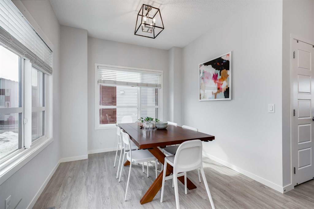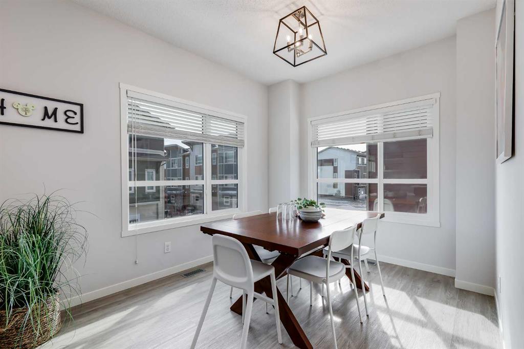 Located in the desirable community of Harvest Hills, this three-storey end-unit townhouse offers approximately 1,700 square feet of developed living space, a double attached garage, and a functional layout designed for comfortable living. As an end unit, the home benefits from additional windows that bring in natural sunlight and enhance privacy within the complex. The main level welcomes you with a spacious street-level entryway finished with tile flooring and direct access to the double attached garage, which offers ample storage space. A versatile flex room completes this level and can function as a home office, family room, workout area, or hobby space. Upstairs, the second floor serves as the primary living area, where large windows fill the living room with natural light, creating a comfortable space to relax or gather with friends and family, while 10-foot ceilings add to the sense of openness.The kitchen features white cabinetry, quartz countertops, stainless steel appliances, and a two-tone island with seating. Soft-close drawers, generous cupboard space, and a pantry provide practical storage. Adjacent to the kitchen, the dining area offers room for everyday meals or entertaining, and a two-piece powder room is also located on this level. Just off the living room, a covered balcony with a BBQ gas hookup provides a convenient outdoor space. The primary bedroom includes a walk-in closet and an ensuite with dual sinks and an oversized tiled shower. Two additional bedrooms, a four-piece bathroom, and a dedicated laundry area complete this floor. Recent updates include a new roof in 2025 and a new dishwasher installed the same year. Pets are permitted with board approval, and residents enjoy shared outdoor features including a community garden and an apple orchard. The surrounding neighbourhood offers an excellent balance of recreation and convenience. The home is just steps from Harmony Park and the nearby pond, where walking and biking pathways wind through the community. Harvest Park, with playgrounds and tennis courts, is only minutes away, while the natural landscapes of Nose Hill Park are roughly a five-minute drive from the property. Families will appreciate the proximity to Ascension of Our Lord School along with several additional schools in the surrounding area. Everyday errands are convenient with the shops, services, and dining options of Country Hills Village located just minutes away. Nearby retailers such as T&T Supermarket and Costco provide easy access to groceries and household essentials. Recreation opportunities are available at Vivo, while major routes including Country Hills Boulevard and Deerfoot Trail make commuting across the city straightforward. Calgary International Airport is only minutes away, and regional shopping at CrossIron Mills can be reached in about ten minutes. Public transit is easily accessible, and connected cycling pathways link the community to surrounding amenities and routes across Calgary.