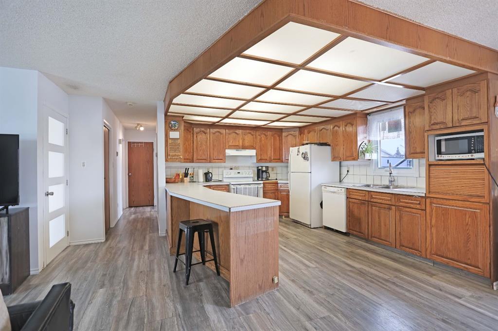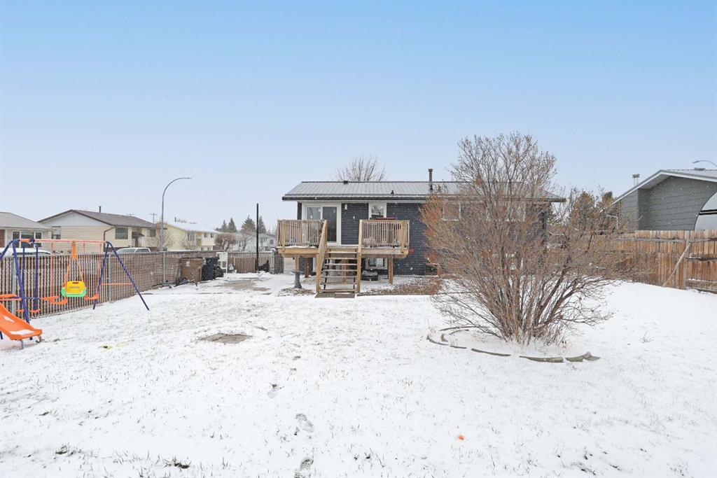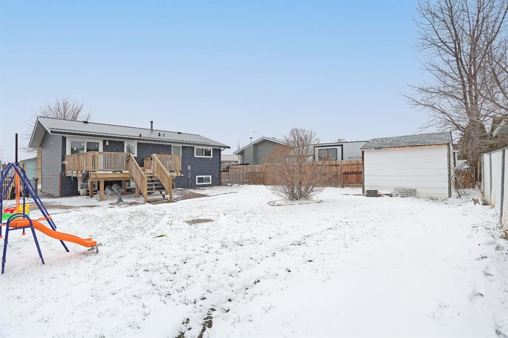 Welcome to 3 Lake Newell Bay, an 5 bedroom home offering space, comfort, and peace of mind just a few blocs from Lake Stafford! With major exterior upgrades completed in 2026, including a durable metal roof, vinyl siding, soffits, fascia, eaves, and energy efficient vinyl windows, this home is move-in ready and built to last. Step inside to find a freshly painted interior that feels bright and inviting throughout. The main floor features a functional open floor plan layout with oak kitchen cabinets, good size living room and dining area that leads out to the back deck. The main floor also hosts two spacious bedrooms, including a primary bedroom with a large walk-in closet complete with a custom organizer. Downstairs offers excellent versatility with three additional bedrooms, a second bathroom, and a convenient kitchen area with new flooring that’s perfect for extended family, guests, or potential suite use. Enjoy year round comfort with central air, and appreciate the added care with recently cleaned furnace and air ducts. Outside, you’ll find a great deck for relaxing or entertaining, a storage shed, a fully fenced yard with chain link and privacy slats, and a front parking pad for convenience. Situated in a quiet cul-de-sac in desirable Lakewood, this property offers the perfect blend of simple living with centrally located convenience. A fantastic opportunity for families, investors, or anyone looking for an affordable home.