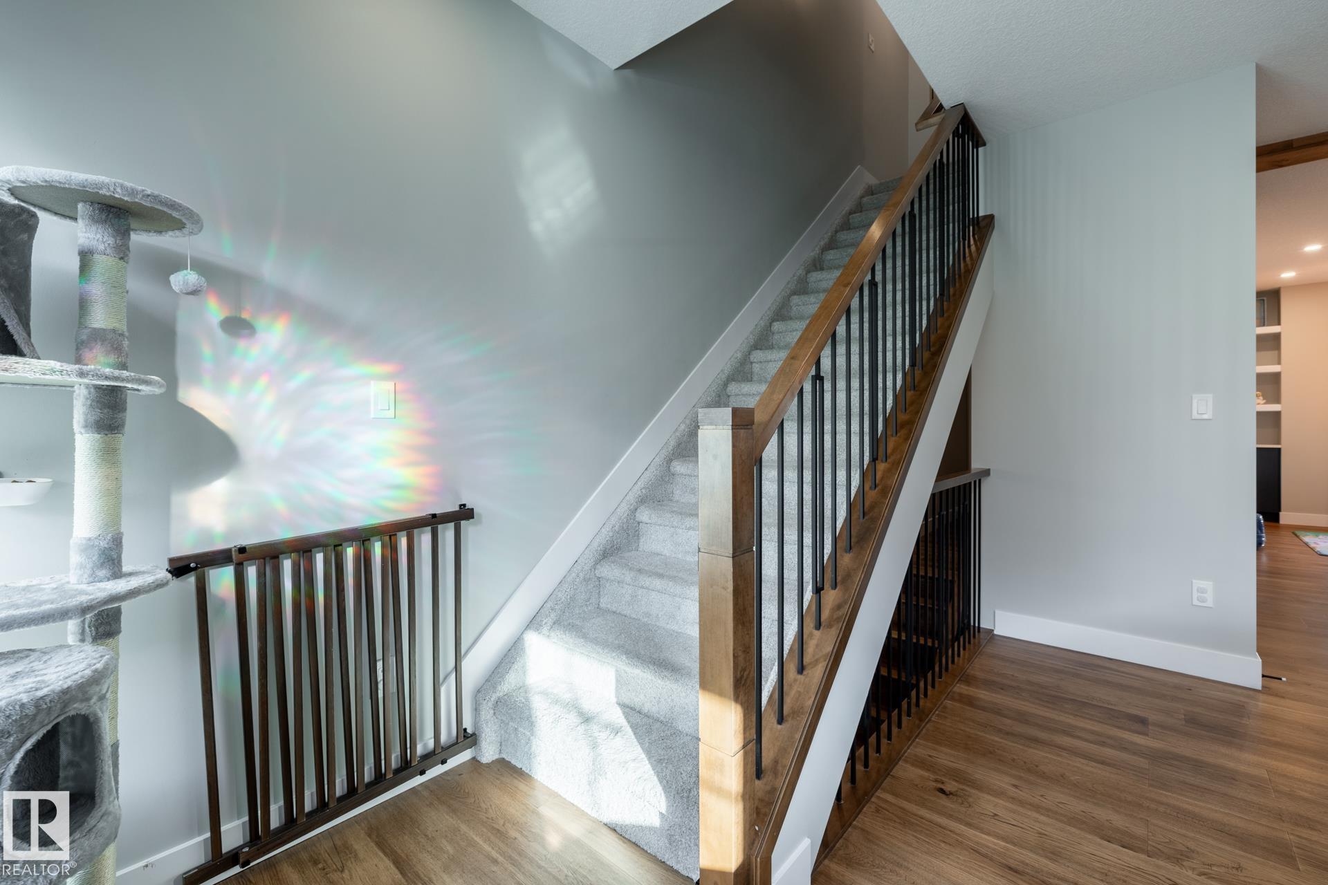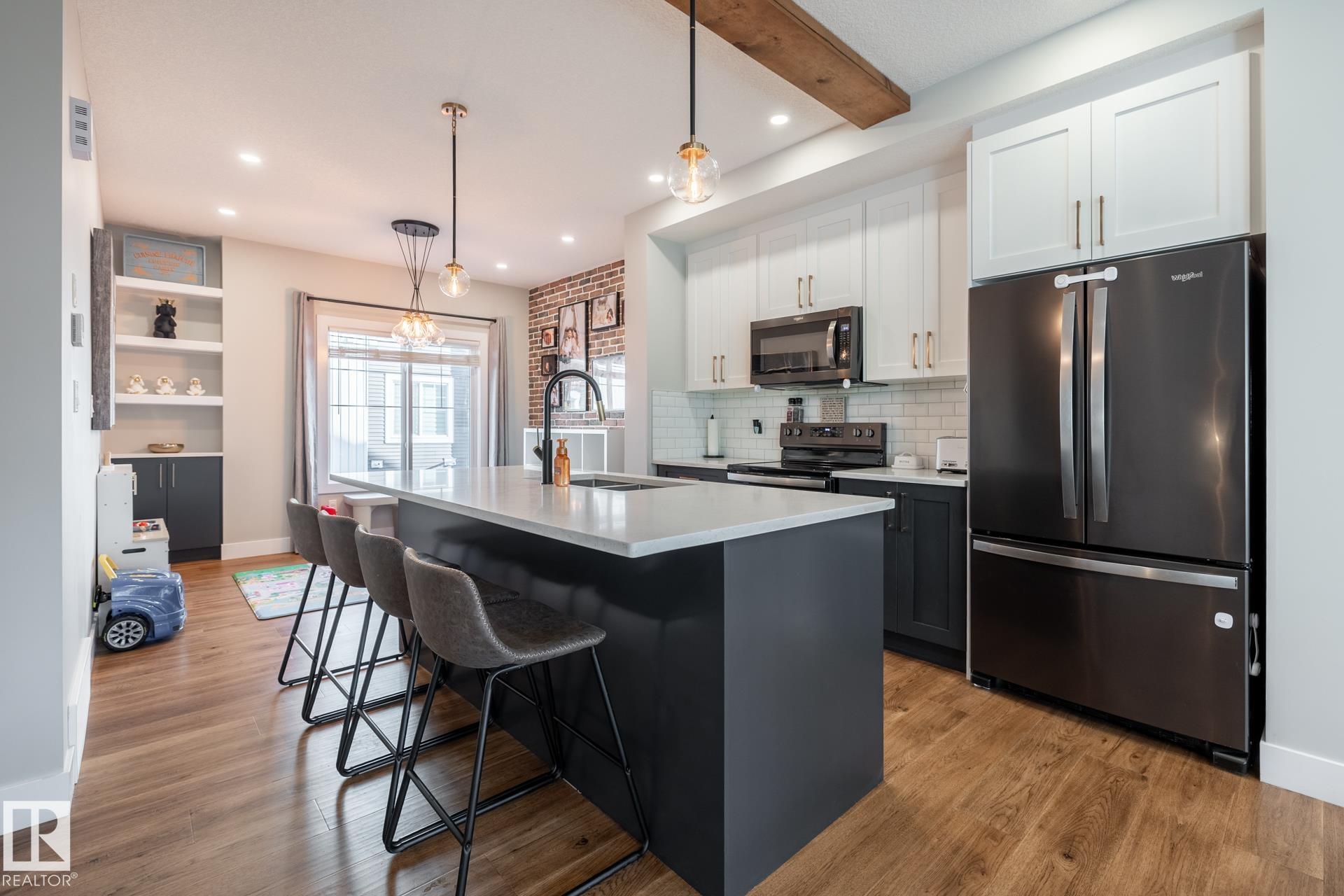 Spacious Townhome with Modern Comforts. Welcome to this beautifully designed 1,692 sq. ft. south-facing townhome, filled with natural light and thoughtful details throughout. This home offers 3 bedrooms plus a versatile office/den and 3 bathrooms, creating plenty of space for families, professionals, or anyone who values comfort and flexibility. The second floor is the heart of the home, showcasing an open-concept design with a bright dining area, stylish kitchen, and inviting living room. A charming brick-and-wood wall with electric fireplace adds warmth and character, while the balcony provides a perfect spot for morning coffee or evening relaxation. Practicality meets convenience with a laundry room located on the second floor, while all bedrooms are privately tucked away on the third level. A double attached garage offers secure parking and extra storage space. With quick possession available, this home is move-in ready and waiting for its next owner.