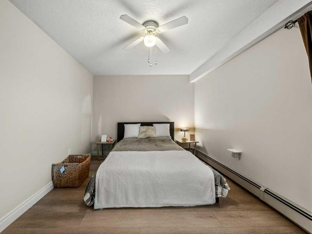 Discover this sun-soaked, top-floor urban retreat in the heart of Sunalta—just 250 m from the Sunalta LRT and an easy stroll to groceries, restaurants, and downtown. Welcome to The Barcelona, a pet-friendly, professionally managed building with a proactive board, a healthy reserve fund (even a recent operating surplus!) and no expensive elevators break downs. Tucked into a very quiet corner on the top floor, step inside and feel the pride of ownership. This meticulously maintained 2-bedroom condo has been thoughtfully upgraded with a deep acrylic soaker tub and temperature-controlled Moen faucet/shower, new vinyl plank flooring in the bedrooms, and brand new vinyl windows in bedrooms (installed early 2025). It’s even been professionally cleaned to impress the most discerning buyer. The airy, open-concept layout offers plenty of room to relax and entertain, featuring easy-care ceramic tile flooring, neutral paint tones, knock-down ceilings, gleaming maple cabinetry, and an eye-catching wood-burning fireplace with a reclaimed wood mantle—perfect for cozy evenings in. A spacious primary bedroom, second bedroom, in-suite laundry, and 4-piece bath complete the interior. Step out onto your generously sized south-facing balcony, recently refreshed with a new waterproof membrane, privacy glass, and aluminum railings—ideal for soaking up the sun or taking in the sunset. This well-cared-for building has seen major updates too, including the complete removal of all Poly-B plumbing (2019–2022) and wired for Telus fibre and Shaw/Rogers high-speed internet. Your unit comes with a heated, secure underground parking stall and a large lockable storage shed—big enough for tires, skis, sporting gear, or even a bike. Additional perks include bicycle storage and a main-floor parcel locker for convenience and peace of mind. Both TVs and mounts are included, along with all window coverings—and the seller is happy to leave furnishings for the lucky new owner. This is a rare turn-key opportunity perfect for a young professional, student, or first-time buyer seeking style, comfort, and unbeatable location.