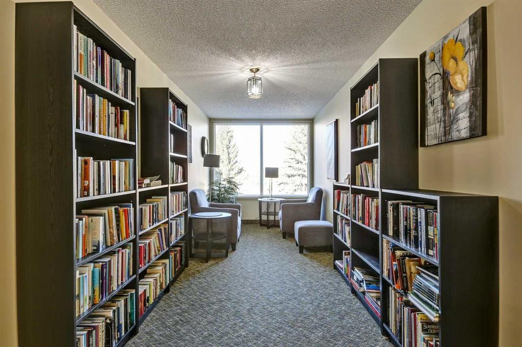 Top floor, end unit. Spacious living room & dining room with corner, wood burning fireplace, access to covered deck overlooking the rear of the building, large kitchen. One bedroom with ensuite, den, 1/2 baths & in-suite laundry complete this condo. Excellent amenities including a stunning lobby fireplace and sitting area, fitness room with sauna, games room with shuffleboard and billiard table, wonderful social lounge with fully equipped kitchen and weekly coffee club, library, meeting room, exterior sun deck and lounge area, additional storage lockers plus a car wash! Bayshore Park is an investment in both real estate and lifestyle. Very active volunteer group and many social activities to enjoy. Professionally managed 25+ adult complex (no pets allowed). Wonderful location nestled between Oakridge and Palliser, close to many restaurants, medical offices, Co-op, Safeway and just steps to the gorgeous pathways at Glenmore Reservoir. Pick your possession and move right in.