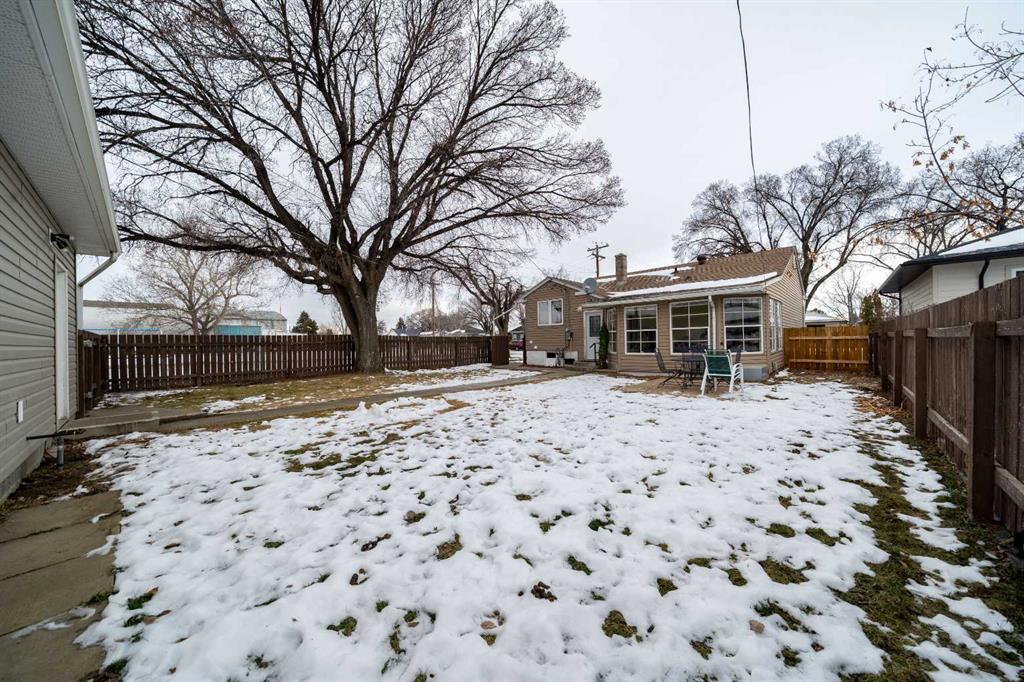 Welcome home to this perfectly sized property in the heart of Bow Island—just steps from a beautiful park, schools, the arena, curling rink, and swimming pool. It’s truly a location that’s hard to beat. Since purchasing, the seller has completed several major updates for added peace of mind, including replacing the blocked sewer line inside the home, fully excavating and replacing the sewer line from the house to the street, installing all new basement windows, adding a new front door, and installing a new sump pump. The home has also been freshly repainted throughout. You’ll appreciate the bright three-season sunroom, offering the perfect place to relax through spring, summer, and fall. The front yard also features underground sprinklers—simply attach the system to a hose and connect it to the outdoor tap. While there is no timer, the water pressure pops the sprinklers up and waters the yard efficiently. This is a solid home in a welcoming community—move-in ready and waiting for its next owner. Please note: the missing baseboards will be reinstalled in the dining area and around the front door, and the main bedroom will be repainted (which is why no current photo is included). The hall closet doors, the door to the three-season room (shown as the living room on the RMS), and the door between the foyer and the house will also be painted to match the rest of the main level before possession.
