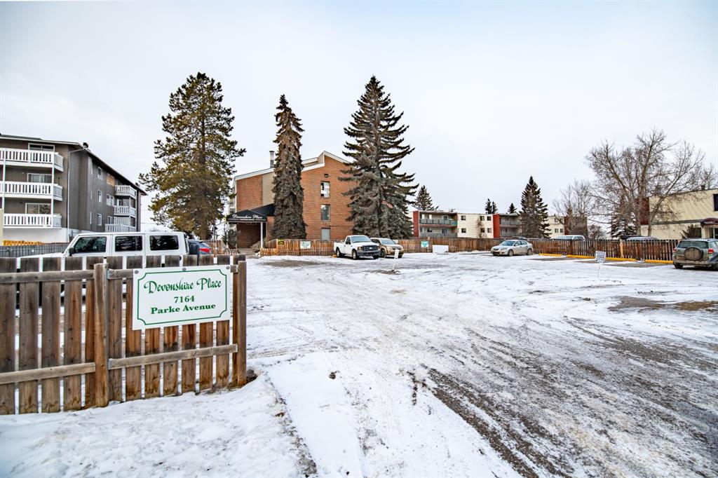 Welcome to Unit #303 at Devonshire Place, a top-floor condo located in the highly desirable Pines neighbourhood of Red Deer, an area well known for its mature trees, established parkland, and excellent walkability. This well-maintained 2-bedroom, 1-bathroom unit offers approximately 821 sq. ft. of comfortable living space and represents a great opportunity for first-time buyers, investors, or downsizers seeking low-maintenance living in a quiet, established community. Situated on the third floor, this unit features a south-facing balcony that fills the home with natural light throughout the day and provides a pleasant outdoor space for relaxing, reading, or enjoying your morning coffee. The layout is practical and functional, offering a spacious living room, a dedicated dining area, and a well-sized kitchen with refurbished cabinetry and newer stainless steel appliances. The unit is move-in ready and does not require painting, with only minor flooring updates that a buyer may wish to complete to personalize the space.This 2-bedroom unit includes an in-suite washer/dryer combo, a feature that is rarely found at this price point and adds everyday convenience. Both bedrooms are generously sized and flexible enough to accommodate guests, a home office, or additional storage. The bathroom is centrally located, and storage throughout the unit has been thoughtfully planned to support comfortable daily living. Devonshire Place is a solid, well-built 3-storey building constructed in 1976 and is currently undergoing building renovations. Condo fees have already been adjusted to cover these improvements, meaning the new owner will not need to worry about upcoming special assessments related to the current upgrades, providing added value and long-term peace of mind. The unit includes one designated outdoor parking stall, along with ample visitor and street parking for guests. Location is one of the strongest features of this property, with walking distance to a walk-in medical clinic, parks, extensive trail systems, shopping, schools, and Parkland Mall, as well as nearby services such as a gas station, veterinary clinic, restaurants and other everyday amenities. The Pines neighbourhood is one of Red Deer’s most established areas and is especially popular for its mature landscaping, interconnected walking and biking trails, and proximity to major shopping and services while still offering a peaceful residential feel. Condo living in this area allows residents to enjoy green space, convenience, and community without the maintenance of a single-family home, making it an increasingly popular lifestyle choice. Affordable, lowest priced 2 bedroom unit as of today, well located and offering excellent value, Unit #303 at Devonshire Place is a smart choice for buyers looking to enjoy comfortable condo living in one of Red Deer’s most desirable neighborhoods.