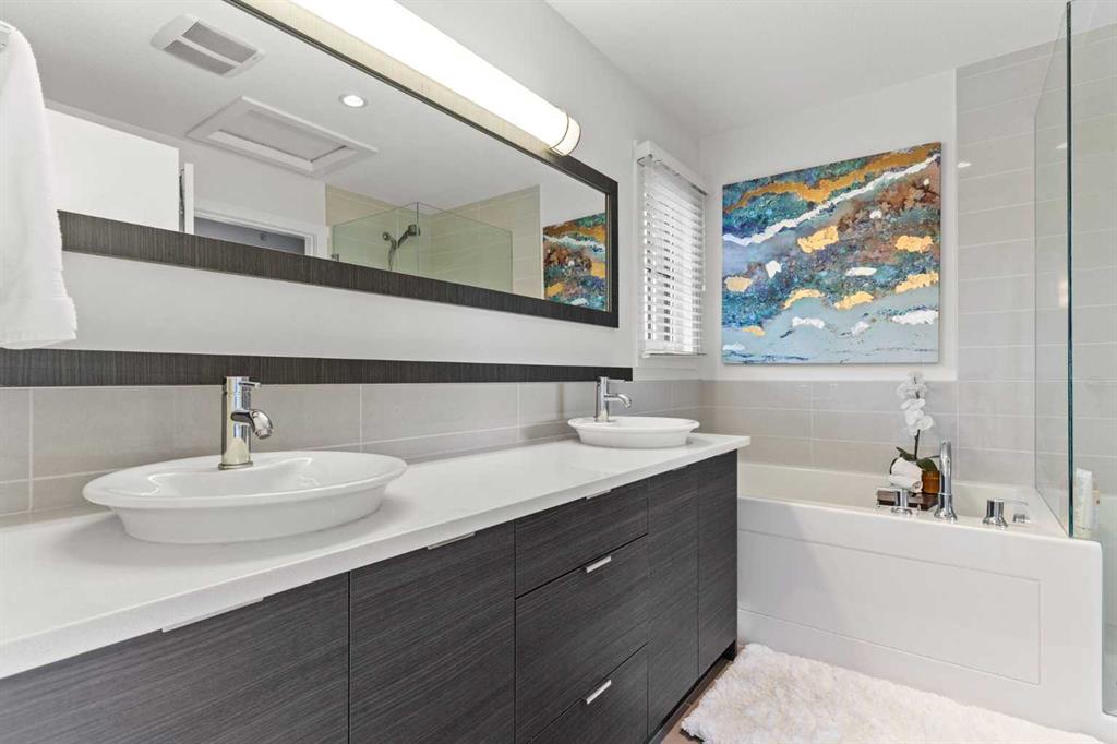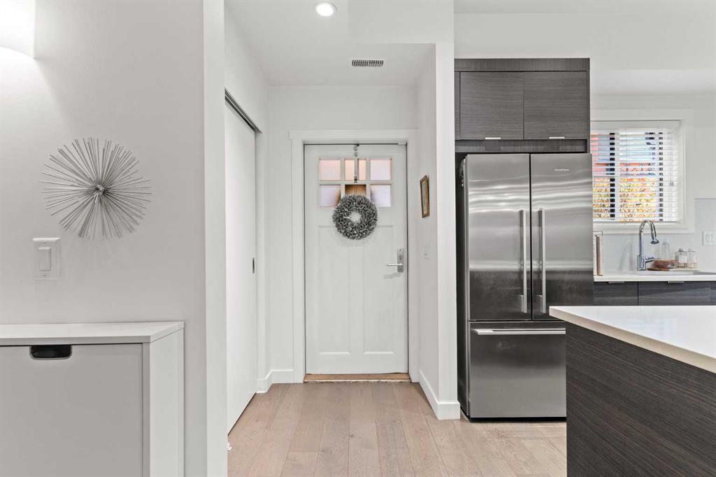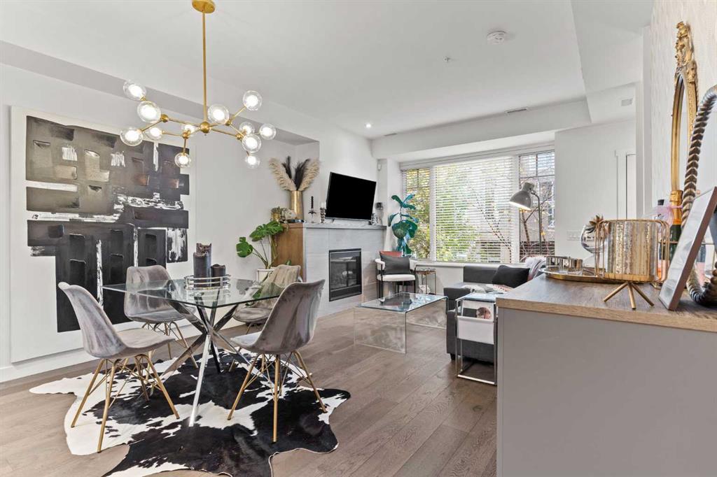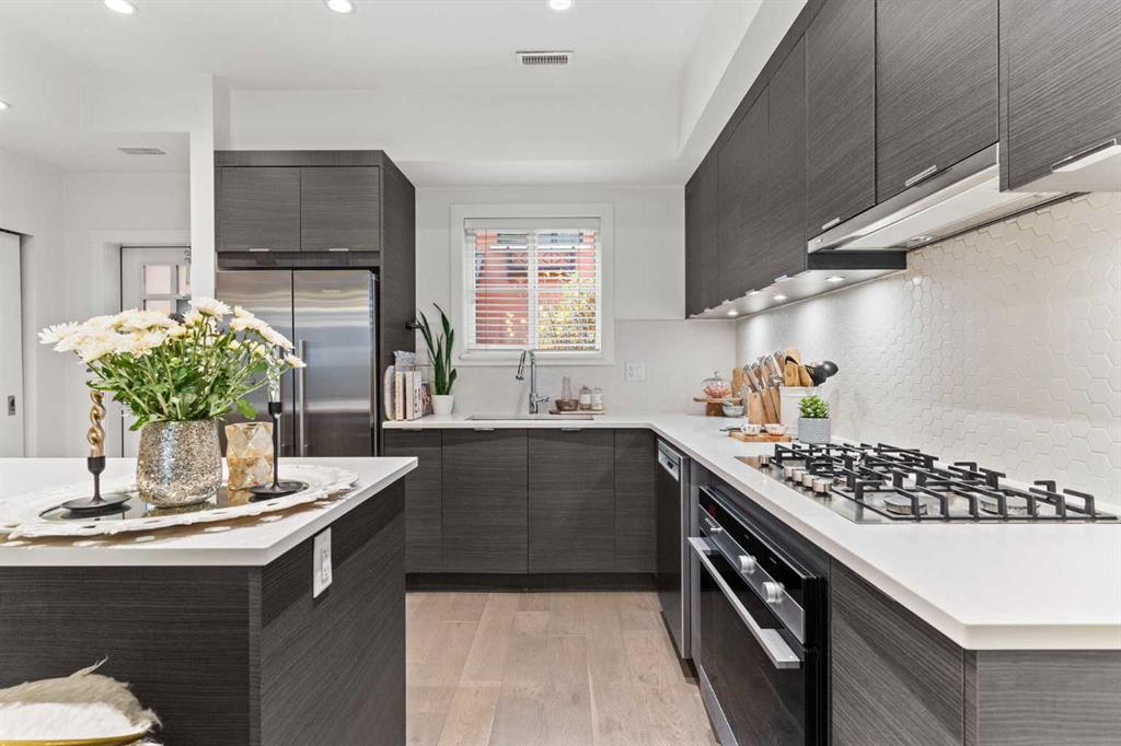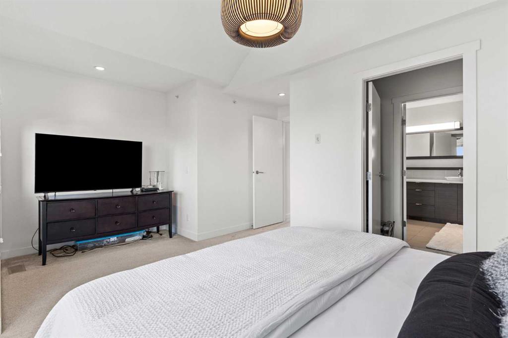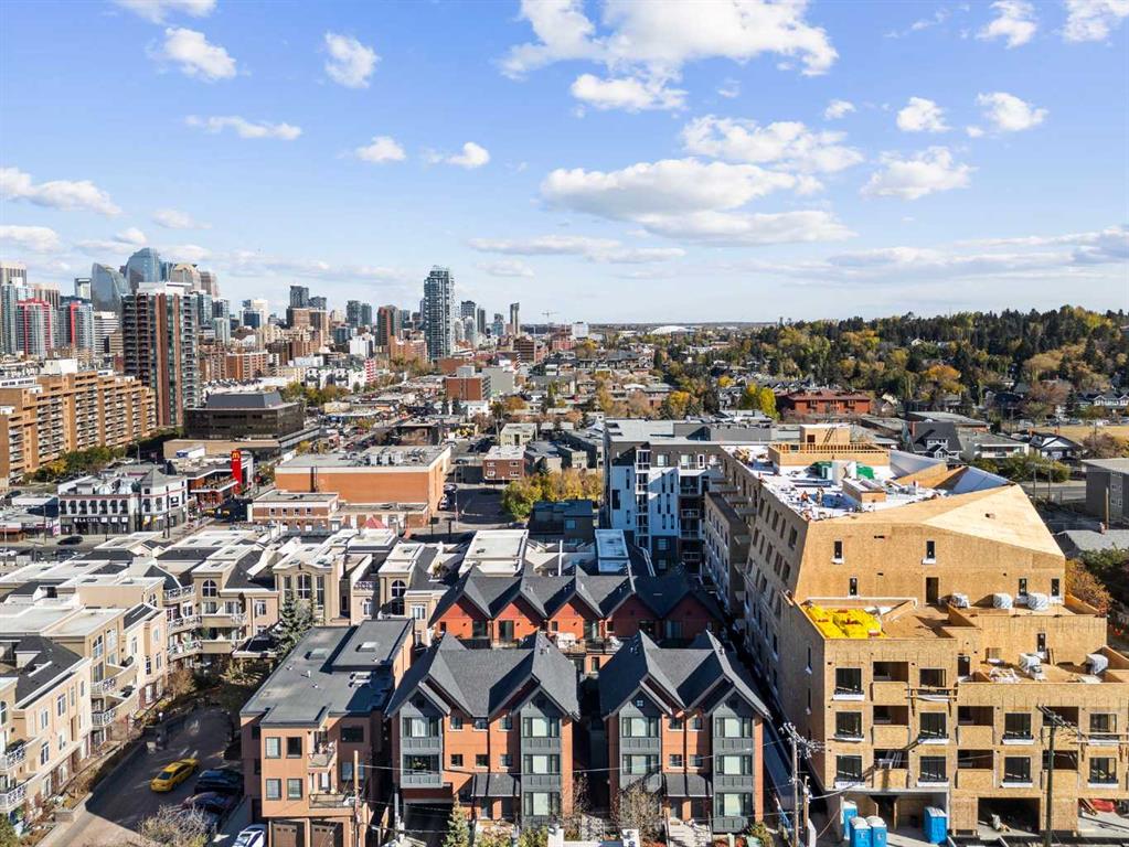 With OVER 1,443 SQ.FT of developed living space, this stylish 3 BEDROOM inner city townhome offers urban convenience just steps from 17th Avenue’s shops and restaurants. Quietly tucked in a boutique 9-unit complex, this courtyard unit is STUNNING and features a BRIGHT, functional layout. The top floor is dedicated to a SPACIOUS PRIMARY retreat with VAULTED CEILINGS, a large walk-in closet, spa-like ensuite with HEATED FLOORS, soaker tub, & a glass shower. You'll love the views of downtown Calgary along with the added added bonus of a private rooftop balcony overlooking the terrace below. The second level includes two generous bedrooms, a full bath, and laundry. The open-concept main floor features a modern kitchen with QUARTZ countertops, stainless steel appliances including a gas range, plenty of cabinet space, and a dedicated dining area that flows into the living room where you can cozy up to the gas fireplace. Enjoy your private courtyard patio with gas hookup — perfect for summer BBQs. A large flex room on the lower level offers additional storage or workout space. The home includes a secure, heated underground parking stall with direct access from your unit. Move-in ready and ideally located, this home combines modern design with the best of downtown living!