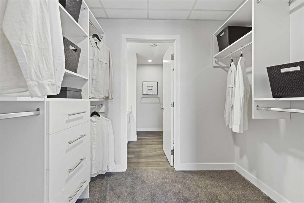 LOVE YOUR LIFESTYLE! Les Jardins by Jayman BUILT next to Quarry Park. Inspired by the grand gardens of France, you will appreciate the lush central garden of Les Jardins. Escape here to connect with Nature while you savor the colorful blooms and vegetation in this gorgeous space. Ideally situated within steps of Quarry Park, you will be more than impressed. Welcome home to 70,000 square feet of community gardens, a stunning Fitness Centre, a Dedicated dog park for your fur baby, HOTEL INSPIRED LOBBY which acts as an extension of your home and an outstanding OPEN FLOOR PLAN with unbelievable CORE PERFORMANCE. You are invited into a thoughtfully planned 2 Bedroom, 2 Full Bath plus expansive WEST FACING balcony with PARK VIEWS. This beautiful Condo boasts QUARTZ COUNTERS throughout, sleek STAINLESS STEEL WHIRLPOOL APPLIANCES featuring a Whirlpool refrigerator with top mount freezer, dishwasher with stainless steel interior, electric freestanding range with self clean, microwave hood fan. Luxury Vinyl Plank Flooring, High End Fixtures, Smart Home Technology, A/C and your very own in suite WASHER AND DRYER. This beautiful suite offers bright bedrooms with large windows, a storage area with a hanging rack, a large Primary Suite with a walk-in closet that includes built in closet organizers and an ensuite, a spacious dining/living area with sliding doors, an open concept layout between the kitchen, dining, and living room, and ample kitchen and bathroom counter space. STANDARD INCLUSIONS: Solar panels to power common spaces, smart home technology, air conditioning, state-of-the-art fitness center, high-end interior finishings, ample visitor parking, luxurious hallway design, forced air heating and cooling, and window coverings in bedrooms. Offering a lifestyle of easy maintenance where the exterior beauty matches the interior beauty with seamless transition. Les Jardins features central gardens, a walkable lifestyle, maintenance-free living, nature nearby, quick and convenient access, smart and sustainable, fitness at your fingertips, and quick access to Deerfoot Trail and Glenmore Trail. It is located 20 minutes from downtown, minutes from the Bow River and pathway system, and within walking distance to shopping, dining, and amenities. Schedule your appointment today!