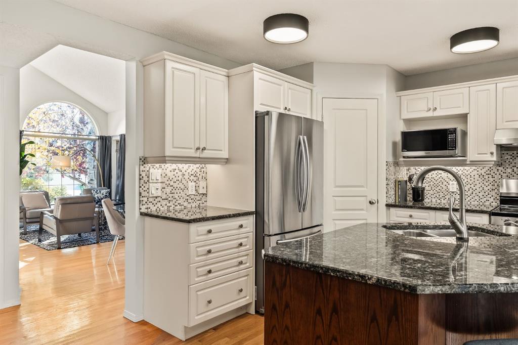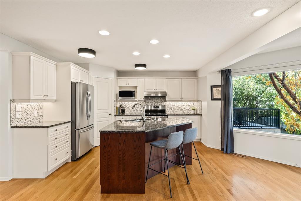 OPEN HOUSE - Sat, Oct 25 (1-3pm) SMART…. really, really SMART! Stepping through the door, the WARMTH of this home will draw you in. The living room sits under a 16’ ceiling at the entrance, a wall of windows harnessing the sun, open to a generous dining space with gleaming oak hardwoods all of which provides an inviting sense of space. The hardwoods lead through the main level to the Great Room in back, COSY & WARM, with wonderful window treatments which bring the volume of trees in back in – COMFORTING. The open concept kitchen enjoys a center island breakfast bar, granite counters and s/s appliances. The Great Room leads directly to your large rear deck, buried in trees, a wonderful retreat following a busy day, a space your friends and family will LOVE! There is also a private den/home office tucked away on the main level too. Upstairs the Primary Retreat is THE CHARM! A large sleeping quarters, a lounge/reading nook, level with the tree canopy in back – CALMING! PLUS… a 4pc en suite and his & hers walk-in closets. The second bedroom up is well-sized and enjoys a 4pc bath to itself. The walkout features a LEGAL SUITE, exceptionally well appointed with a large Great Room/Kitchen/Eating area, two beds, a 4pc bath and separate laundry. This could be a welcome mortgage helper, ready to go, or easily converted to a Rec/Family room with a fabulous wet bar, for your own use. This two storey walkout offers 3,020 sq ft of developed living space, over three levels on a quiet cul de sac in Signal Hill (NO SIDEWALK). A GREAT LOCATION - a short walk to Westhills Shopping Centre - shopping, dining and the movies are a short walk away - great schools, the Westside REC Centre and West LRT and ease of access west or downtown – A GREAT LOCATION! Additional features include two new Hi Eff furnaces in 2023, new garage door in 2025, two hot water tanks, Central A/C, irrigation and a garage insulated, and drywalled with epoxy flooring