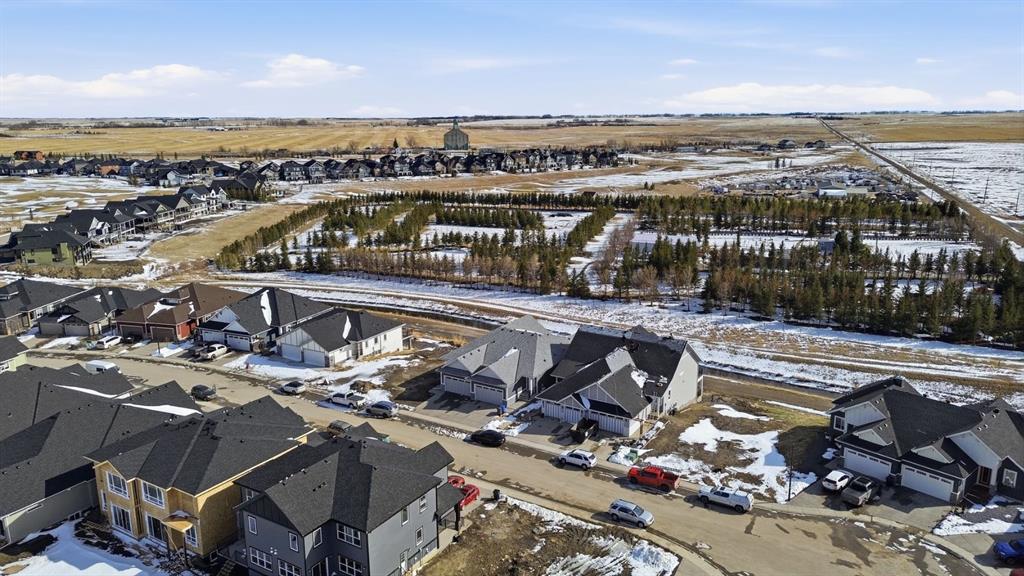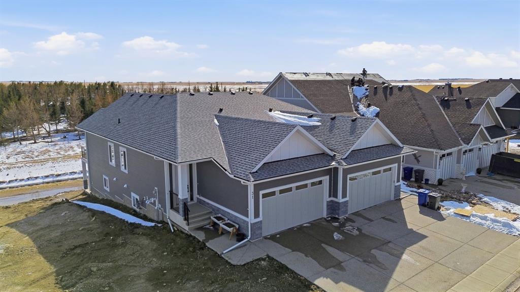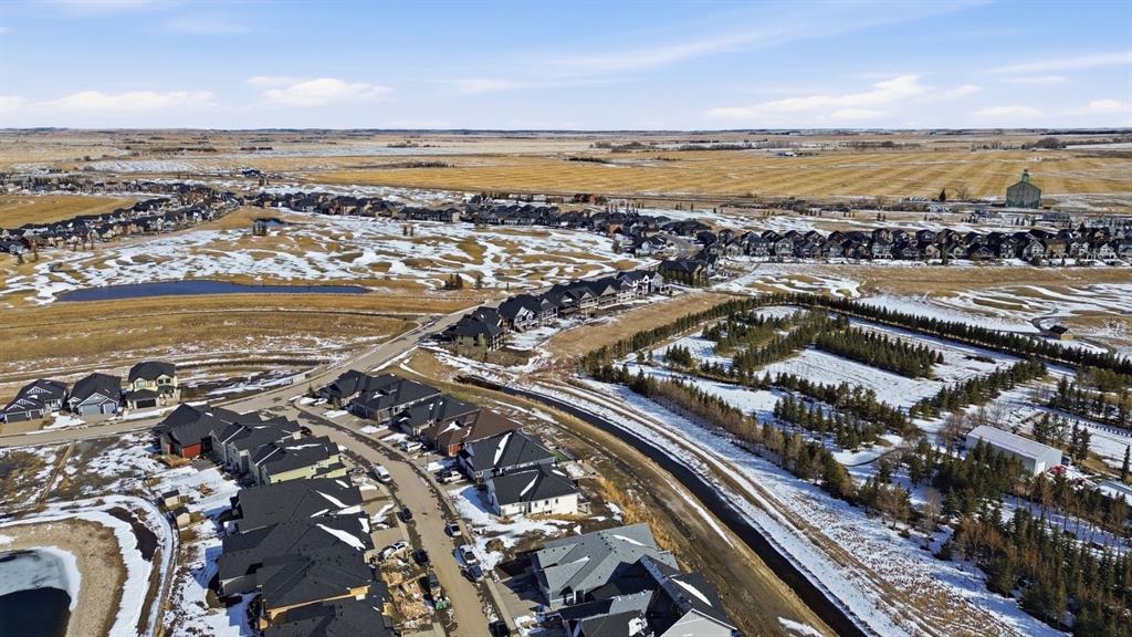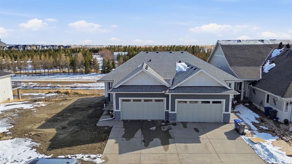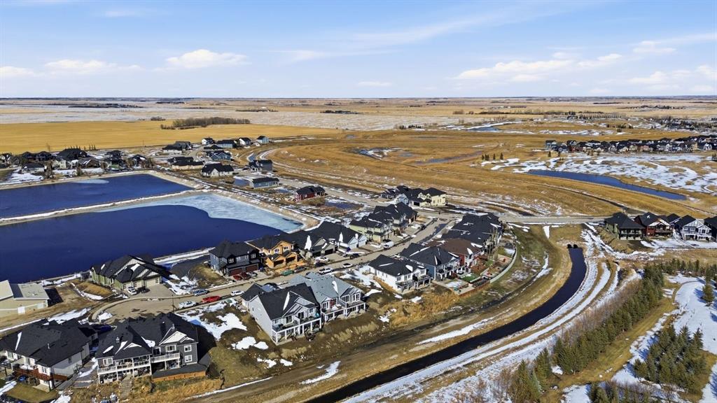 Welcome to an exceptional opportunity in the peaceful golf course community of Lyalta—where modern luxury meets serene, small-town living just a short drive from Calgary. This stunning semi-detached bungalow offers a rare and thoughtfully designed layout featuring 4 bedrooms and 3 full bathrooms, including two primary suites—one on the main floor and one in the fully developed walkout basement—perfect for multi-generational living or added flexibility. Step inside and be immediately impressed by the soaring high ceilings, expansive windows, and bright open-concept design that fills the home with natural light. The main living area flows seamlessly into a modern kitchen with quartz countertops, creating an ideal space for both everyday living and entertaining. The walkout basement expands your living space with a large recreation room, two additional bedrooms (one ideal as a home office), and direct access to the outdoors. Backing onto green space and a tranquil canal, this home offers privacy, views, and a true connection to nature. Complete with a front attached double garage and built with today’s modern finishes and standards, this home is truly move-in ready. Located in a growing golf course community near Muirfield Lakes Golf Club, residents enjoy wide open landscapes, quiet surroundings, and a slower pace of life—while still being within commuting distance to Calgary. Lyalta is known for its tight-knit community feel, scenic views, and access to outdoor lifestyle amenities. If you’ve been searching for a home that offers space, flexibility, and peaceful living without sacrificing modern comfort, this is one you won’t want to miss. Book your private showing today and experience the lifestyle this home has to offer.