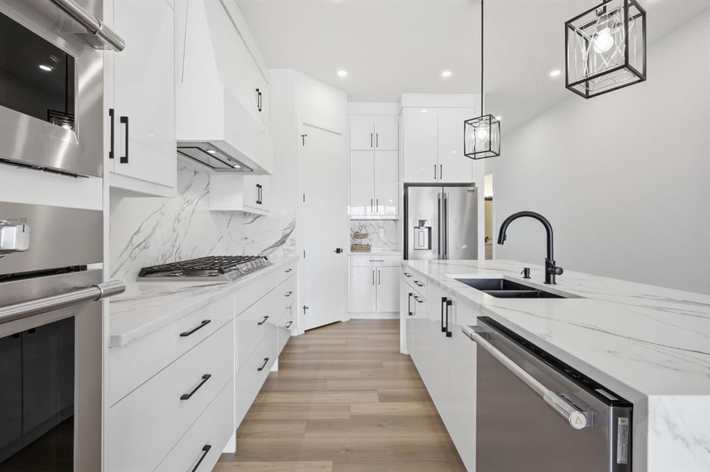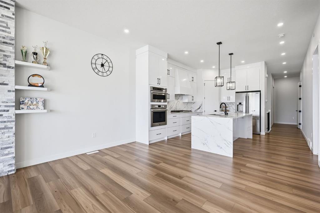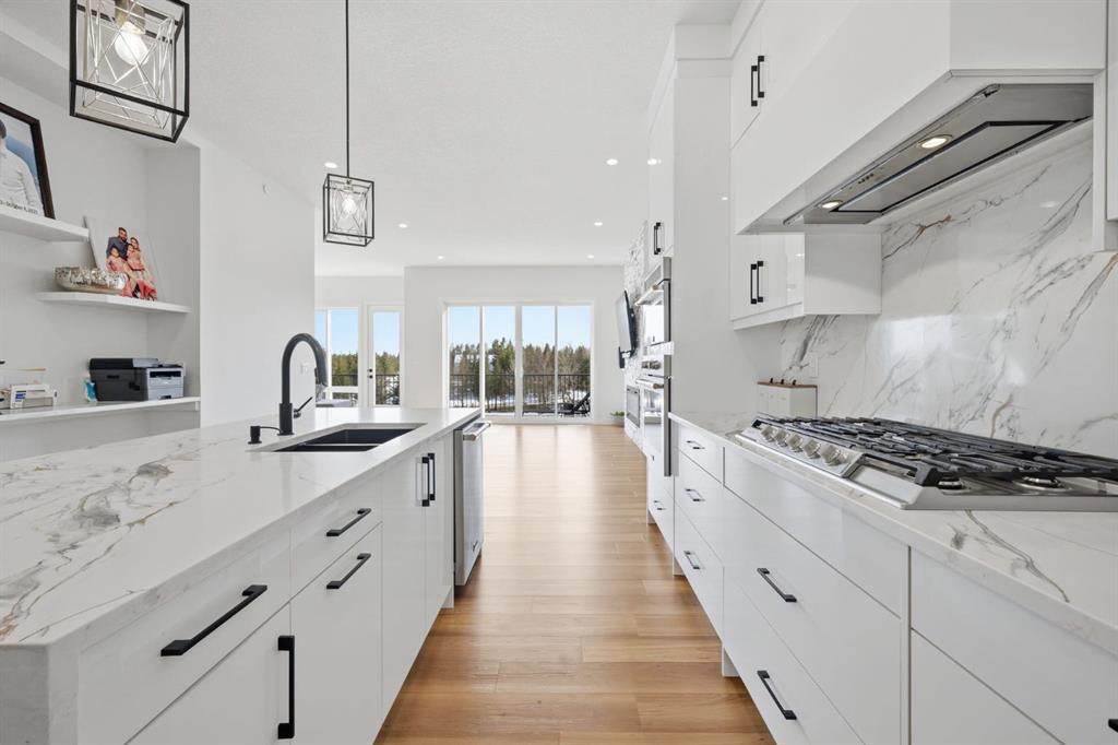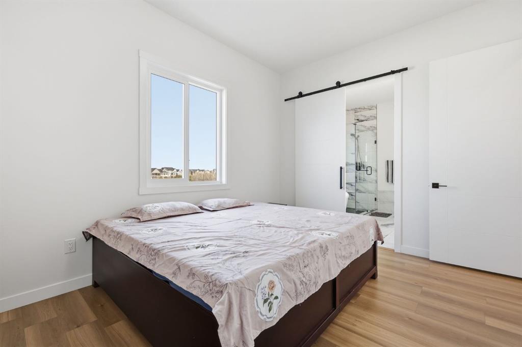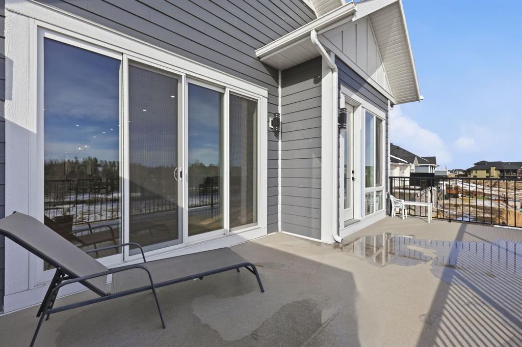 Welcome to an exceptional opportunity in the peaceful golf course community of Lyalta—where modern luxury meets serene, small-town living just a short drive from Calgary. This stunning semi-detached bungalow offers a rare and thoughtfully designed layout featuring 4 bedrooms and 3 full bathrooms, including two primary suites—one on the main floor and one in the fully developed walkout basement—perfect for multi-generational living or added flexibility. Step inside and be immediately impressed by the soaring high ceilings, expansive windows, and bright open-concept design that fills the home with natural light. The main living area flows seamlessly into a modern kitchen with quartz countertops, creating an ideal space for both everyday living and entertaining. The walkout basement expands your living space with a large recreation room, two additional bedrooms (one ideal as a home office), and direct access to the outdoors. Backing onto green space and a tranquil canal, this home offers privacy, views, and a true connection to nature. Complete with a front attached double garage and built with today’s modern finishes and standards, this home is truly move-in ready. Located in a growing golf course community near Muirfield Lakes Golf Club, residents enjoy wide open landscapes, quiet surroundings, and a slower pace of life—while still being within commuting distance to Calgary. Lyalta is known for its tight-knit community feel, scenic views, and access to outdoor lifestyle amenities. If you’ve been searching for a home that offers space, flexibility, and peaceful living without sacrificing modern comfort, this is one you won’t want to miss. Book your private showing today and experience the lifestyle this home has to offer.
