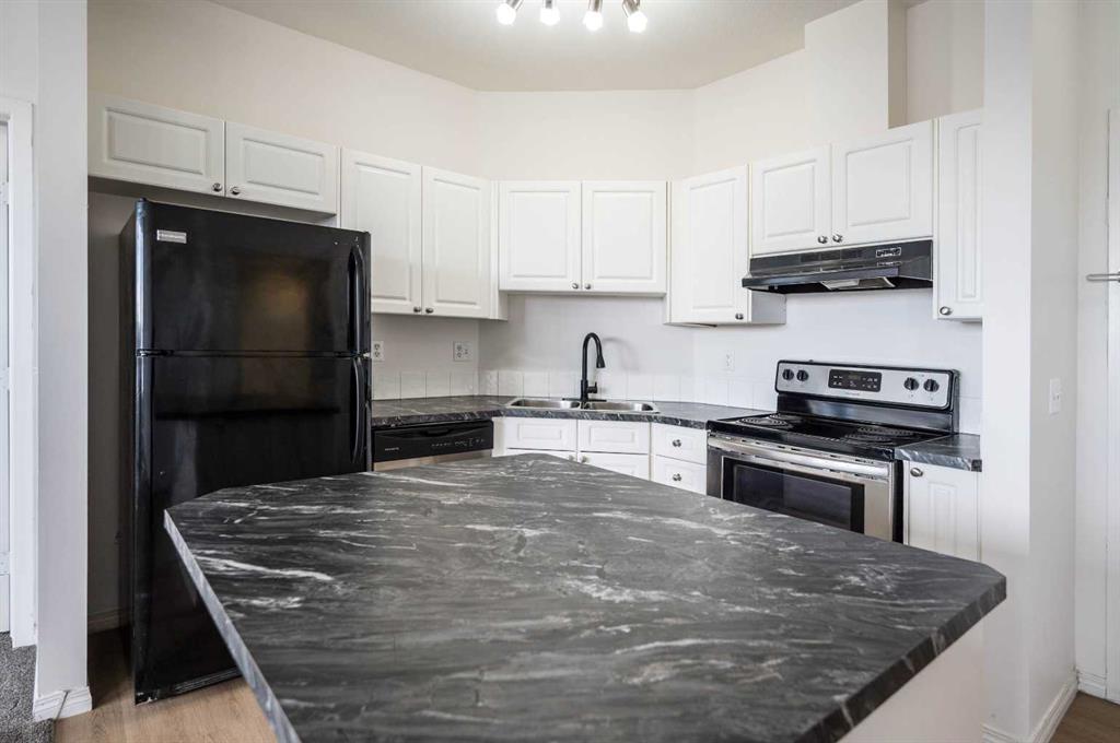 Enjoy evening sunsets and a peek view of the mountains from this bright, top-floor corner 2-bed, 2-bath condo in the established Applewood Park community. Updated with new modern touches for immediate move-in appeal, this unit features brand-new countertops in the kitchen and main bath, brand-new luxury vinyl plank flooring plus fresh paint throughout—creating a clean, modern, and welcoming feel. The large west-facing balcony with gas BBQ hookup is perfect for summer evenings, and you’re literally steps from Elliston Park’s trails, playgrounds, and pet-friendly green space. Inside you’ll find 9-foot ceilings and an open-concept layout that feels spacious and bright. Updated kitchen with crisp white cabinetry, modern appliances, large central island, and new countertops — ideal for everyday cooking or entertaining. Cozy living room anchored by a gas fireplace and large windows. Generous primary suite with walk-in closet and private 4-piece ensuite. Second bedroom plus another full 4-piece bath is perfect for guests, a home office, or roommate. In-suite laundry, titled heated underground parking stall, and secure storage locker. Location is unbeatable: 2-minute walk to the Max Purple transit line, minutes to 17th Avenue shops, restaurants and East Hills Shopping Centre (Costco, Walmart, Cineplex and more). Stoney Trail access makes commuting or weekend escapes effortless. Tailored for first-time buyers, professionals, investors, downsizer or anyone seeking low-maintenance living, this updated corner gem checks every box. Priced to move quickly. Don’t wait! Schedule your private showing today before it’s gone!