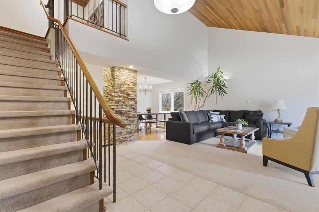 Opportunities like this are exceptionally rare in the prestigious community of Varsity Estates. Beautifully landscaped with mature trees and backing directly onto the Silver Springs Golf Course fairway and a stunning treed ravine area, this exceptional property offers a level of privacy and natural beauty rarely found in the city. The home has been lovingly maintained through the years and offers an amazing chance to secure a stunning location in this elite community Tucked away on a quiet cul-de-sac, creating a peaceful setting that feels worlds away while remaining close to every city convenience. Set on an expansive pie-shaped lot that offers over 10,000 sq ft with an impressive 150-foot wide rear yard, this property delivers both space and seclusion. Stunning stone work and mature landscaping surrounds the home, while the private backyard offers multiple areas to relax, entertain, and enjoy the space, including your very own putting green. It is a setting that is incredibly hard to replicate in Calgary. Inside, the spacious two story home delights with over 2500 sq ft of above grade sq ftg and a bright and functional layout designed for family living. Large windows throughout fill the space with natural light and perfectly frame the surrounding greenery. Soaring cathedral ceilings create an airy first impression, while the main rooms provide ample space for everyday living and entertaining alike. The upper level features four bedrooms, an increasingly hard-to-find layout making this an ideal home for growing families. The fully developed walkout basement adds more additional living space with a spacious family room with fireplace and bar area overlooking the outdoor views and a flex room with large windows creating the perfect space for a games room or fitness area. This level offers a 2 pce powder room and sauna to relax and unwind in. There is opportunity for a 5th bedroom with the addition of an egress window. Whether hosting guests, creating a recreation zone, or simply enjoying extra room to spread out, this lower level offers exceptional flexibility. The home is completed with a triple attached heated garage, providing outstanding space for vehicles, storage, hobbies, or workshop needs. A 50 year Euroshied roof was installed in 2014, the furnaces were serviced in 2025 and several windows have been replaced over the years. This is an incredible opportunity to move in and enjoy or renovate to suit your family needs in this incredible location. The possibilities are endless. Varsity Estates is one of Calgary’s most established and sought-after communities, close to schools, parks, pathways, Market Mall, the University of Calgary, and major routes. This is a rare chance to secure a premier lot and an exceptional lifestyle.