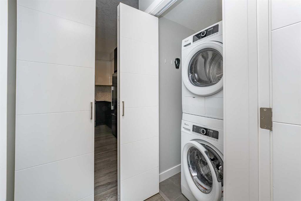 BUILDER SALE! Looking for upgrades in a spec unit? This might be the one. Welcome to the Axess building, located in the heart of the historic Currie Barracks community! Step inside to find luxury vinyl plank flooring and an abundance of natural light streaming through oversized windows. The stylish kitchen showcases a modern blend of crisp white and dark cabinetry, upgraded stainless steel appliances including a gas stove, quartz countertops, and a designer tile backsplash. An open counter connects seamlessly to the dining area, perfect for entertaining. The spacious living room leads to a top-floor balcony with a gas BBQ line and unobstructed southern views—the perfect place to relax and enjoy breathtaking sunsets. The generously sized primary bedroom features a walk-through closet with direct access to the elegant 4-piece bathroom, complete with tile flooring, quartz countertops, and a soaker tub. Just off the kitchen is a versatile nook—ideal for extra storage or a small home office setup. Additional highlights include in-suite laundry, underground parking with a car wash, and a private storage locker located directly in front of your parking stall. All this in a prime location—steps from Mount Royal University, walking paths, parks, shopping, and with easy access via Crowchild Trail to Marda Loop and downtown Calgary. A truly exceptional opportunity to own in one of Calgary’s most desirable communities.