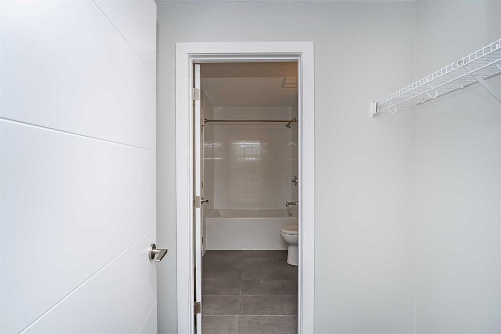 BUILDER SALE! Looking for upgrades in a spec unit? This might be the one. Welcome to the Axess building, located in the heart of the historic Currie Barracks community! Step inside to find luxury vinyl plank flooring and an abundance of natural light streaming through oversized windows. The stylish kitchen showcases a modern blend of crisp white and dark cabinetry, upgraded stainless steel appliances including a gas stove, quartz countertops, and a designer tile backsplash. An open counter connects seamlessly to the dining area, perfect for entertaining. The spacious living room leads to a second-floor balcony with a gas BBQ line, easy connect. The generously sized primary bedroom features a walk-through closet with direct access to the elegant 4-piece bathroom, complete with tile flooring, quartz countertops, and a soaker tub. Just off the kitchen is a versatile nook—ideal for extra storage or a small home office setup. Additional highlights include in-suite laundry, underground parking with a car wash, and a private storage locker located directly in front of your parking stall. All this in a prime location—steps from Mount Royal University, walking paths, parks, shopping, and with easy access via Crowchild Trail to Marda Loop and downtown Calgary. A truly exceptional opportunity to own in one of Calgary’s most desirable communities