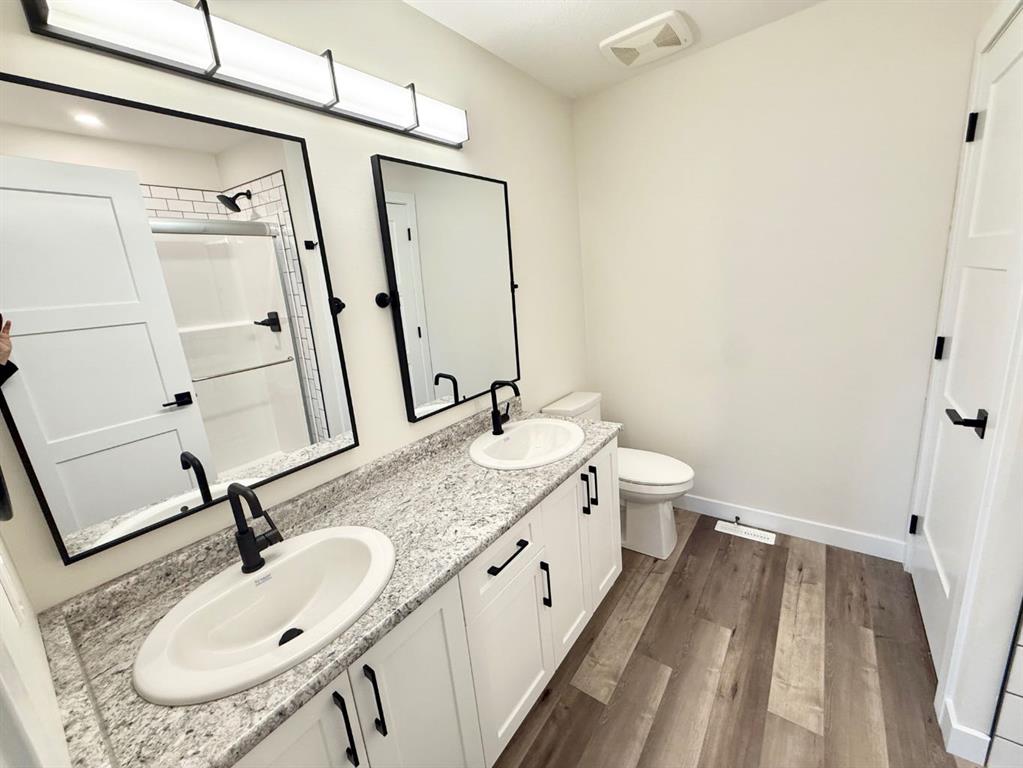 This brand new end unit triplex, built in 2025, features a modern two-storey design with an attached heated garage! It boasts a fenced and landscaped backyard, with a deck, providing adding privacy and outdoor space. Inside, you'll find durable vinyl plank flooring throughout the main, open concept with bright white cabinetry that's beautifully contrasted by a rich dark island with an eating bar. Stainless steel appliances, and a 2 piece bathroom finish off the main floor. Upstairs, the large primary bedroom offers a walk in closet and a sitting area, along with a 4 piece ensuite. There are also 2 additional bedrooms, another full bathroom, and an upstairs laundry for added convenience. Also comes complete with a concrete driveway, 10 year new home warranty, and quick possession!