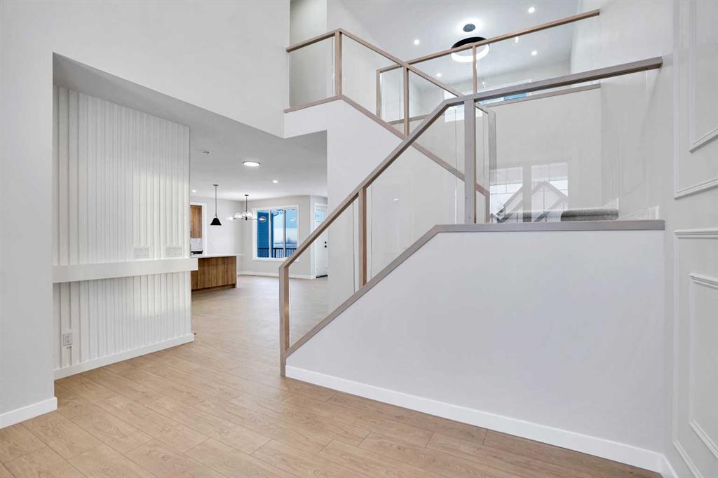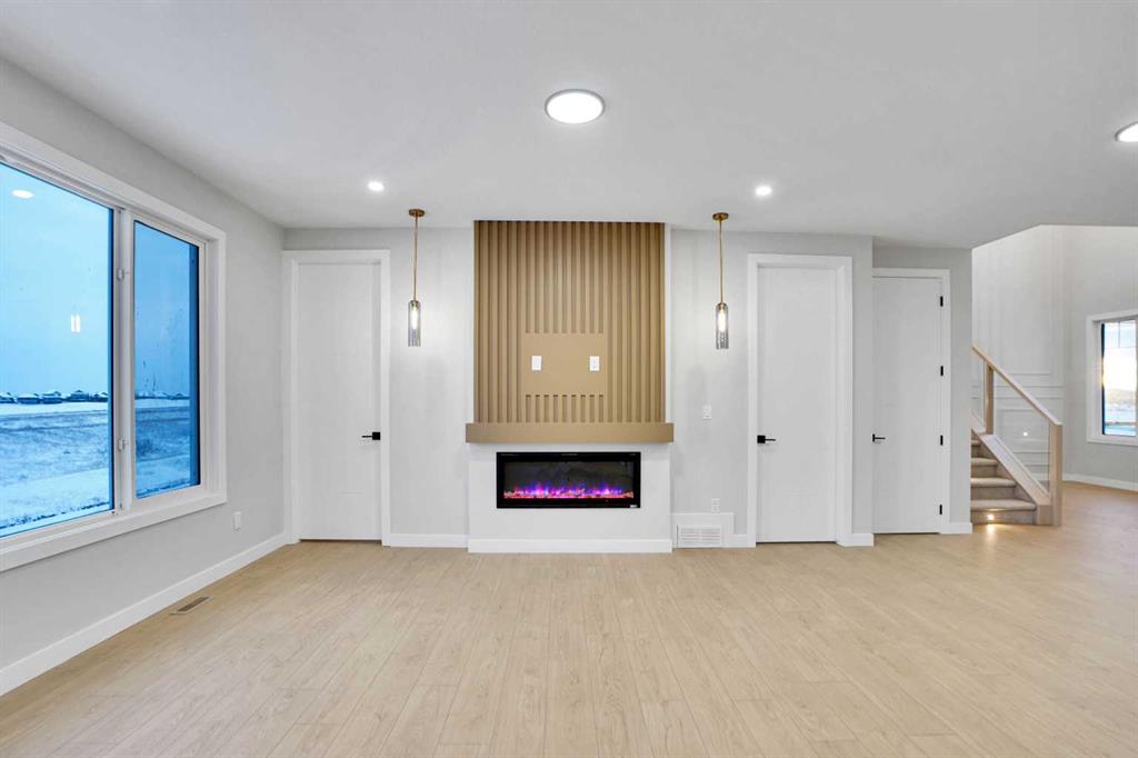 This brand-new custom two-story over 2600 square feet home offers 4 spacious bedrooms and 4 modern bathrooms, including a main-floor bedroom with a full bath. The layout features separate living and family rooms, a stylish dining area, a high-end kitchen plus a convenient spice kitchen with tons of storage. The luxurious primary suite includes a 5-piece ensuite with a soaker tub, tiled shower, and a large walk-in closet. Backing onto a serene canal near a golf course, the home also includes a mudroom and a triple garage, with a walkout basement overlooking peaceful views. Located in the Lakes of Muirfield in Wheatland County, it offers quiet living with quick access to Strathmore, Chestermere, and Calgary. Eligible for the First-Time Home Buyers GST Rebate, this home is a rare opportunity—contact your realtor to book a showing.