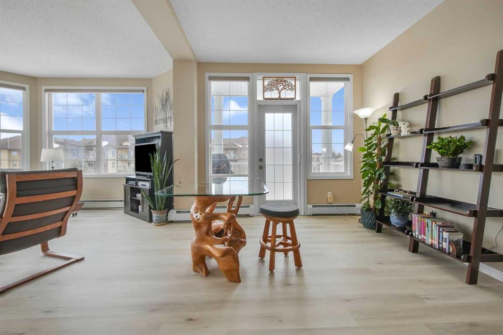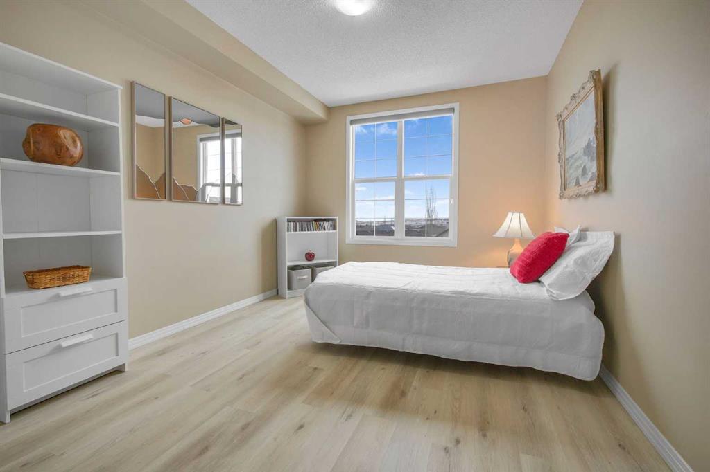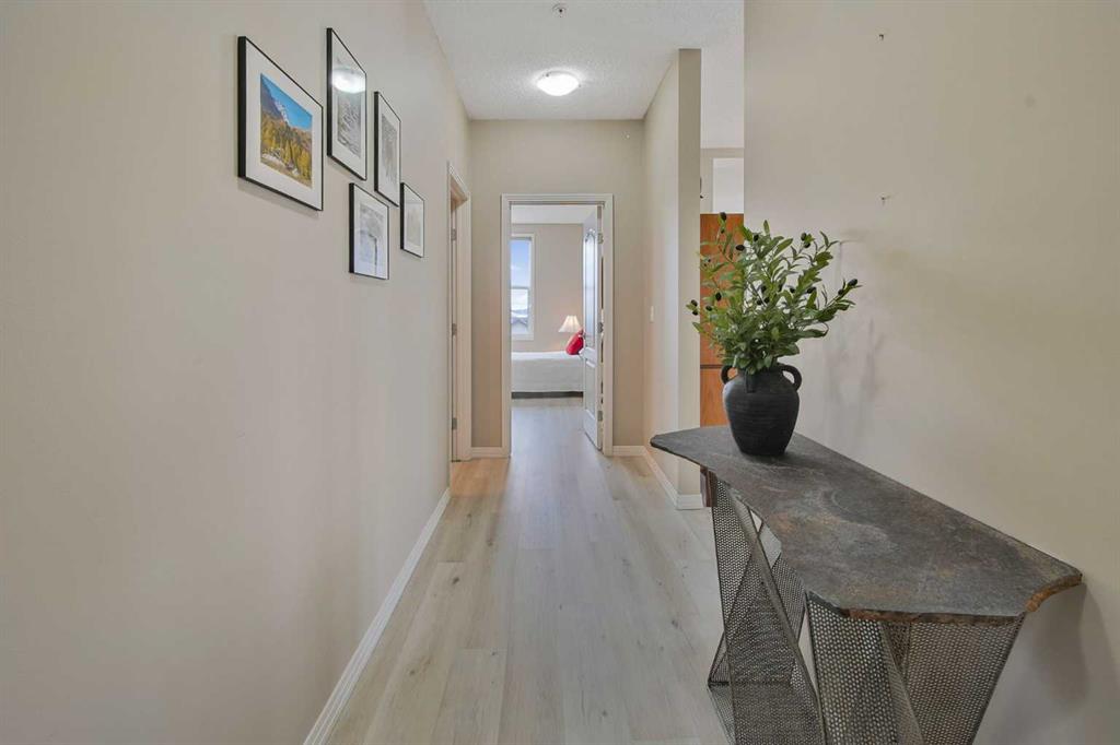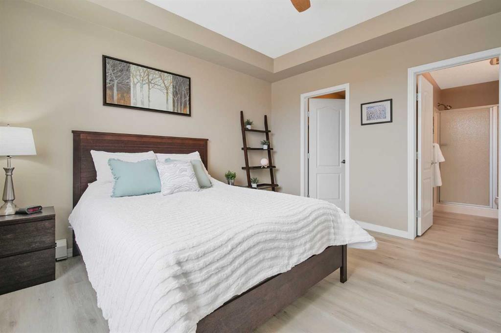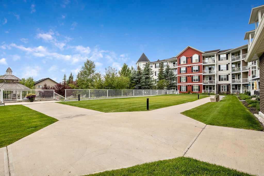 VIEWS, VIEWS & MORE VIEWS! The wow factor this home presents the moment you walk through the door is undeniable. Expansive windows draw your eye immediately to sweeping town and valley views stretching toward the mountains while filling the home with natural light, creating a space that feels both elevated and incredibly inviting. Offering OVER 1,200 sq ft, this beautifully maintained 2 bedroom, 2 bathroom residence combines spacious design with LOCK & LEAVE CONVENIENCE. Thoughtfully updated with luxury vinyl plank flooring, granite countertops and backsplash, PREMIUM REMOTE HUNTER DOUGLAS BLINDS worth over $12,000, and a new oversized Samsung refrigerator. The open layout supports both comfortable everyday living and effortless entertaining. The generous living and dining area feels more like a bungalow than a typical condominium. The living space extends effortlessly onto the private balcony, enhanced by a custom retractable sliding screen doors allowing seamless indoor outdoor living. The kitchen sits at the heart of the home with ample cabinetry, functional workspace and a seamless connection to the main living area, allowing you to remain part of the conversation while preparing meals or hosting guests. The primary suite is a true retreat with walk in closet and private ensuite, while the second bedroom offers flexibility for guests, a home office or hobby space. Located in the highly sought after Penncross complex in Crystal Green, residents enjoy a quiet, exceptionally well managed building distinguished by its unique architectural design, with charming rooflines, varied elevations and a courtyard centered layout creating visual character and a true sense of community. Amenities include themed common areas on each floor, a well equipped fitness room, beautifully maintained courtyard with outdoor BBQ area, TWO TITLED HEATED UNDERGROUND PARKING STALLS, assigned storage and elevator access. Just steps from Crystal Ridge Golf Course and with YEAR-ROUND LAKE PRIVILEGES at Crystal Shores Lake including swimming, skating and recreation, this location offers an exceptional lifestyle balance of recreation, tranquility and convenience. Whether downsizing, relocating or simply seeking a brighter place to call home, this standout property represents one of the most desirable condo opportunities currently available in Okotoks. AND YES… THE VIEWS REALLY ARE THAT GOOD.