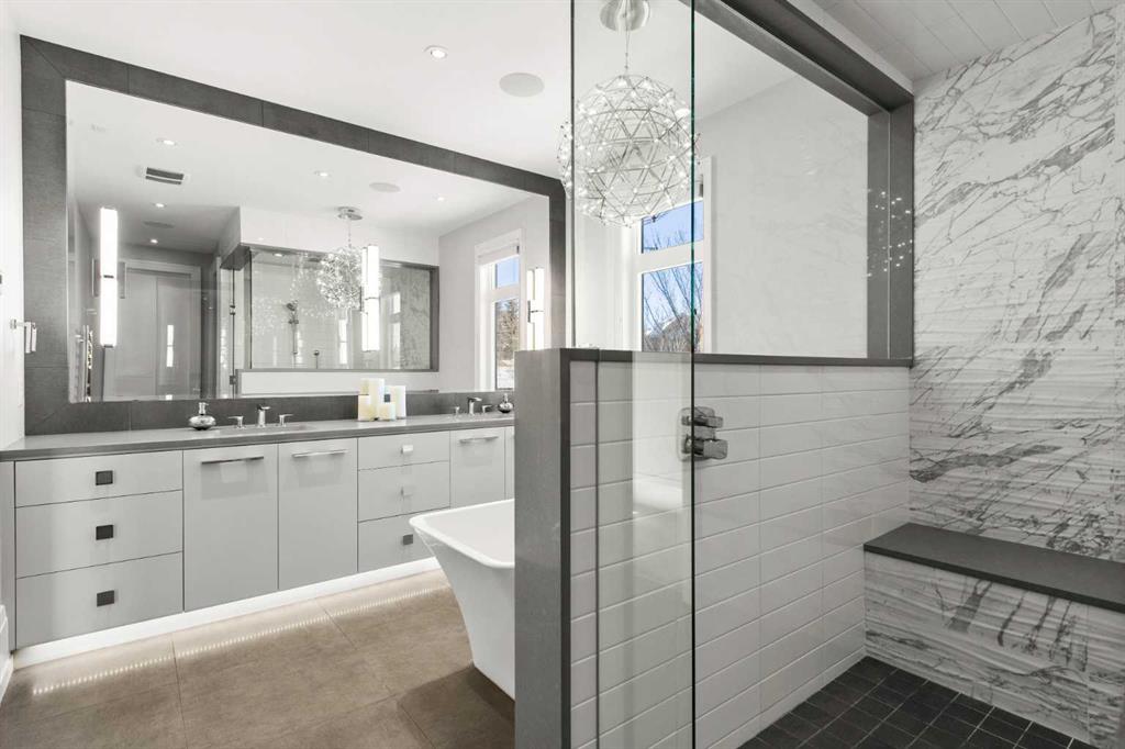 Set on a private 0.23-acre lot with sunny south-facing exposure and sweeping views, this exceptional walkout bungalow by Rockwood Custom Homes offers the discerning buyer refined design and effortless living with a mature treed backdrop, providing a rare sense of privacy and natural separation. From the moment you arrive, the home conveys a quiet sense of quality—thoughtfully crafted, beautifully maintained, and designed to stand the test of time. Inside, soaring ceilings and custom millwork create a sense of understated elegance, while expansive windows frame the landscape and fill the home with natural light. The great room is both striking and inviting, anchored by a statement gas fireplace with carefully crafted built-ins, and flowing seamlessly into the dining area and gourmet kitchen. Designed with intention, the kitchen features a generous island, a fully equipped butler’s pantry with full-size freezer, and exceptional storage—equally suited to everyday living and entertaining. The main floor primary bedroom is a true retreat, positioned to capture the views and offering a spa-inspired ensuite and an expansive dressing room. A private office provides a quiet and refined workspace, ideal for work from home living. The walkout lower level continues the home’s sense of scale, with impressive 10’8” ceilings, a spacious family room with fireplace and custom built-ins, and a sleek galley-style wet bar. Two generously sized bedrooms and a versatile flex room—ideal as a fitness studio, hobby room, or additional office, offer exceptional flexibility for a variety of lifestyles. Outdoors, the south facing backyard is both private and beautifully composed, with a covered patio, professional landscaping, and irrigation—creating an ideal setting for relaxed outdoor living. With a triple car garage and a comprehensive list of features, this is a luxury home that balances craftsmanship, comfort, and location.