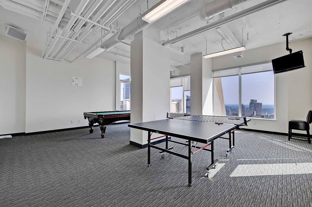 *VISIT MULTIMEDIA LINK FOR FULL DETAILS & FLOORPLANS!* Welcome to SUB-PENTHOUSE LIVING at Vogue! This 2-bed + den, 2-bath condo w/ over 1,200 sq ft on the 34th-floor w/ amazing city skyline band river views boasts two balconies opening off the main living areas. Naturally bright living w/ soaring ceilings, modern light and ceiling details, an open concept floorplan, & engineered hardwood flooring throughout (no carpet!), you are going to love the urban life at Vogue. Gather around the massive island w/ breakfast bar seating & dual undermount sink in the modern, sleek kitchen. Stainless steel appliances include a fridge w/ French doors, a deli drawer, & a freezer drawer, a gas stove & hood fan, a dishwasher, & built-in microwave. White quartz counters & marbled tile backsplash complement the wood & white cabinetry & modern pendant lighting. The open-concept living, dining, and den area has large windows, a gas fireplace, & access to TWO balconies via sliding glass doors. 2 bedrooms flank the main living space for ultimate privacy. The primary bedroom features a walk-in closet w/ custom built-in storage, and a private 5-pc ensuite. Featuring white quartz counters, modern faucets, dual undermount sinks, wood grain cabinetry, a standup shower, & soaker tub w/ full height tile, you’ll find everything you want & more in a primary suite. The secondary bedroom on the opposite side of the unit features a large window, a walk-in closet w/ custom built-in storage, & quick access to the main 4-pc bathroom w/ white a quartz counter, undermount sink, modern faucet, wood grain cabinets & a tub/shower combo w/ full-height tile. Rare for condo living, this unit has a laundry room w/ a washer & dryer, & heated, underground parking w/ a storage locker. VOGUE is a high-end building w/ lots of amenities, including an elegant lobby, full-time concierge, gym, billiards, large party room w/ kitchen & multiple rooftop terraces. Surrounded by parks, transit, the LRT, shopping & more, & within walking distance to the downtown core & all Kensington shops & services – this location truly cannot be beaten.