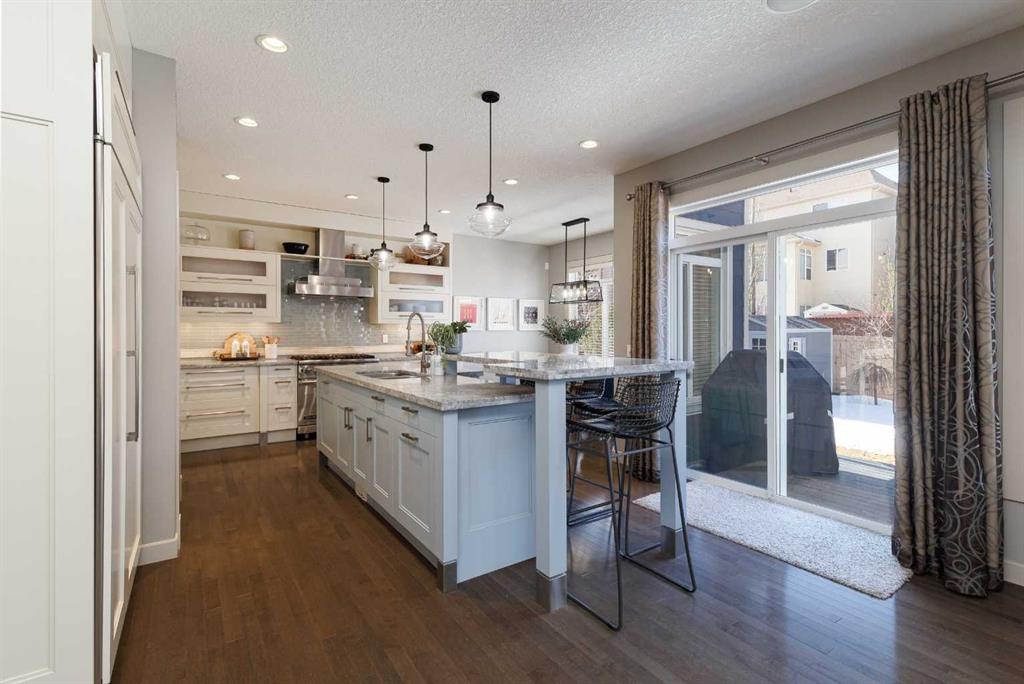 Welcome to this beautifully maintained 2-storey home in Evergreen Estates, ideally located just steps from the endless walking and biking trails of Fish Creek Park. Offered for the first time by the original owners, this immaculately cared-for home showcases exceptional curb appeal, highlighted by a new roof, Gemstone lighting and a durable Hardie Board exterior installed in 2022, along with numerous thoughtful upgrades that enhance both style and long-term value. Step inside to a bright, spacious main level where hardwood and tile flooring flow through the principal living areas. A private front office provides the perfect work-from-home space, while the formal dining room offers an elegant setting for hosting family dinners and special occasions. The inviting living room is centered around a cozy fireplace and large windows that overlook the spectacular west-facing backyard. At the heart of the home is a beautifully appointed kitchen designed for both everyday living and entertaining. Premium appliances include a Sub-Zero refrigerator and Viking gas cooktop, complemented by generous counter space, quality cabinetry, a central island, walk-in pantry and sunny breakfast nook. Sliding patio doors open directly out to the deck/patio, creating a seamless connection between indoor and outdoor living. The professionally landscaped backyard is truly exceptional, offering a rare, private retreat framed by mature trees and a convenient garden shed. Multiple seating areas, lush greenery and underground irrigation create a peaceful setting that is perfect for summer entertaining, family gatherings, or simply relaxing outdoors. Upstairs, a large bonus room filled with natural light provides a comfortable gathering space for movie nights or quiet evenings at home. The upper-level features four spacious bedrooms, including a tranquil primary suite with a walk-in closet and ensuite complete with double vanity, glass shower, and deep soaker tub. A full bathroom serves the additional bedrooms, creating a highly functional layout for growing families. The fully developed, freshly painted basement adds valuable living space and features two large bedrooms with new carpet, a full bathroom, and a spacious recreation area - ideal for guests, teenagers, or extended family. With numerous recent updates and a beautifully landscaped yard, this home offers the rare opportunity to enjoy a mature Evergreen setting without sacrificing modern upgrades and comfort. Upgrades and features include a roof replaced in 2022, Hardie board siding, A/C, a 75-gallon hot water tank, Gemstone exterior lighting, in-ground sprinklers, and a heated double garage with new garage door and upgraded overhead motor. Ideally located close to schools, shopping, and major roadways, the home is also just steps from a lovely community green space and playground - perfect for families. This exceptional home offers an outstanding lifestyle in one of Calgary’s favourite family communities!