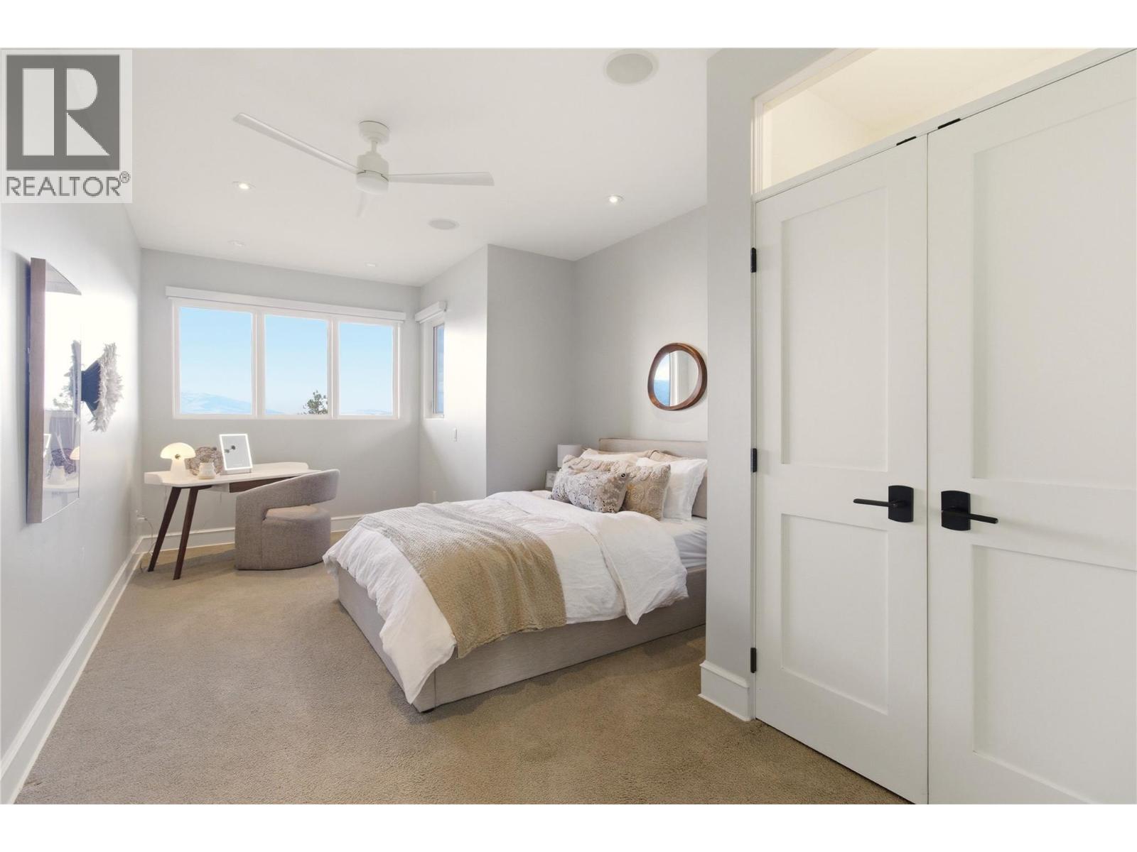 There’s a quiet magic to this home - the way it settles into its surroundings & the way every space feels connected to the lake. Set in one of Kelowna’s best neighbourhoods with the best lake view setting, this one owner home draws subtle inspiration from Frank Lloyd Wright’s Prairie design, blending natural materials, clean lines & a deep sense of warmth. Designed as a coveted two-storey walk-out, the main level opens effortlessly to the outdoors where a concrete & tile pool, sunken hot tub & thoughtfully designed landscaping create a setting that feels more like a private resort, all framed by front row unobstructed lake views. Inside, expansive windows invite in natural light, while Kettle Valley stone, oak hardwood & custom millwork create a grounded, welcoming feel. The great room is anchored by a statement stone fireplace, while the kitchen features a generous island designed for gathering. The main level primary suite is a lake view sanctuary of its own, with spa-like finishes & boutique style closet, while upstairs bdrms each enjoy their own ensuite. Upper level also offers a family room space & office space while the main level features a guest bedroom/den. The lower level of the home features a very rare offering - a fully equipped 1500sqft Collector’s Shop with parking for 4-6 additional vehicles. Accessed by a 7000lb hydraulic elevator lift complete with radiant in floor heat, welding station, fresh air recirculation system + more. Short walk to Cedar Creek Park.
