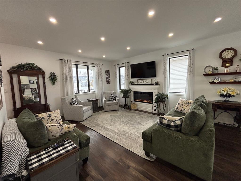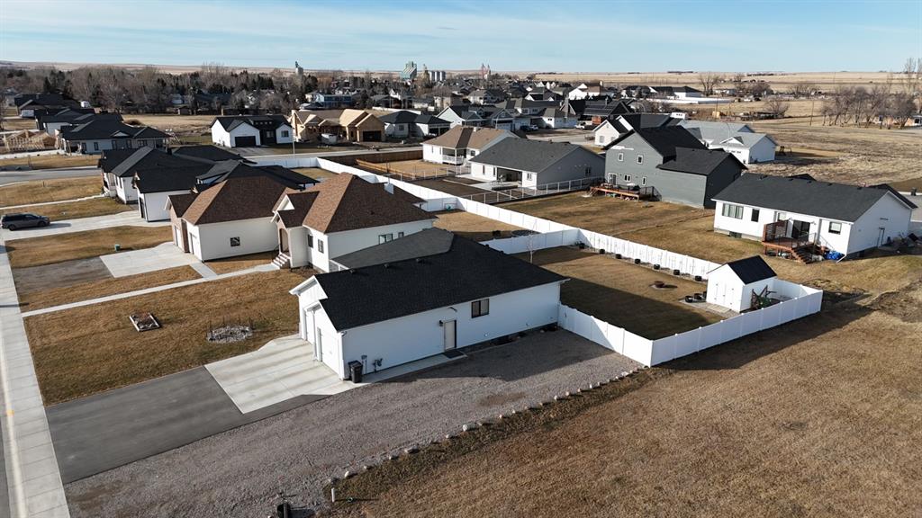 This beautifully built home, completed in 2022, offers 5 bedrooms and 3 bathrooms and truly has it all. The main level welcomes you with a bright, open concept layout featuring the living room, dining area, and kitchen perfect for both everyday living and entertaining. Large windows and abundant pot lights flood the space with light. The spacious kitchen is thoughtfully designed with lots of cabinet space, a large island, and a walk in pantry. Down the hall, you’ll find a 4-piece bathroom, a bedroom, and the primary. The primary bedroom features a generous walk in closet and a stunning 3-piece ensuite with a beautiful shower. The basement includes three additional bedrooms, another 4-piece bathroom, a large family room, and an expansive storage area. Additional highlights include a heated double garage with high ceilings, plenty of parking with a paved driveway, and extra gravel RV parking along the east side of the home. The exterior is just as impressive, with beautifully maintained front and back yards equipped with underground sprinklers. The underground sprinklers can also be connected to town water if the seasonal water isn't accessible. The fully fenced backyard features a 10x14 shed, growing Swedish Columnar Aspen trees, a Silver Cloud Maple tree and a walk out deck that connects directly to the dining area. This exceptional home is move in ready and not to be missed.