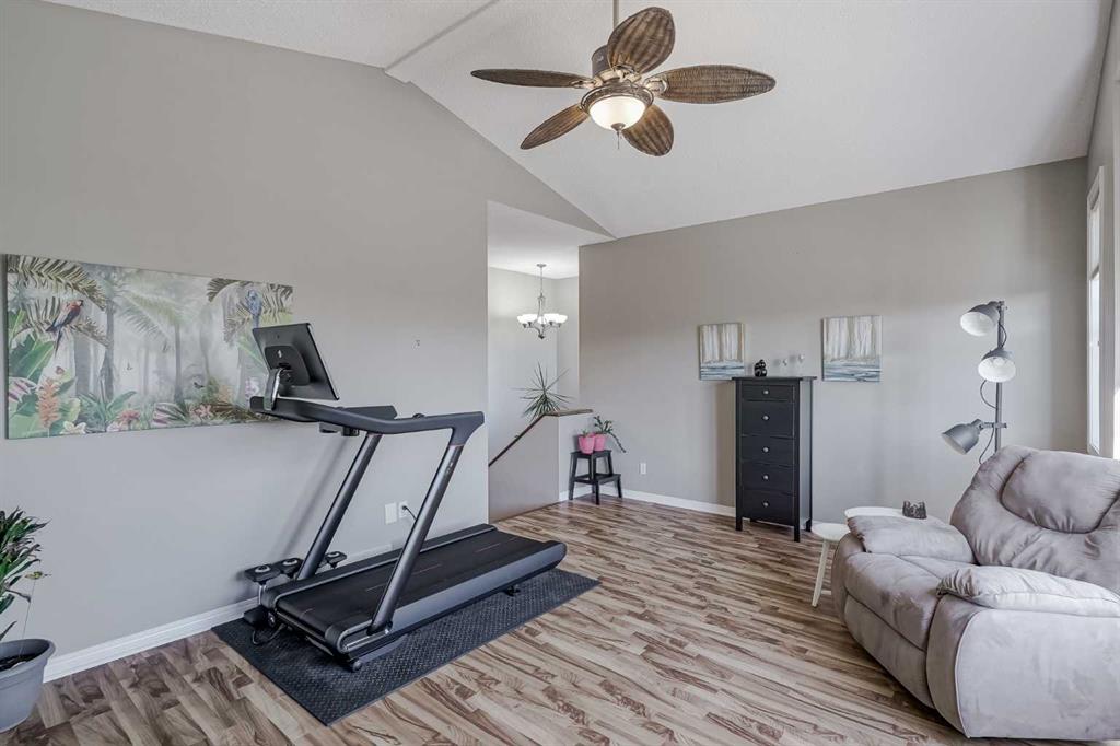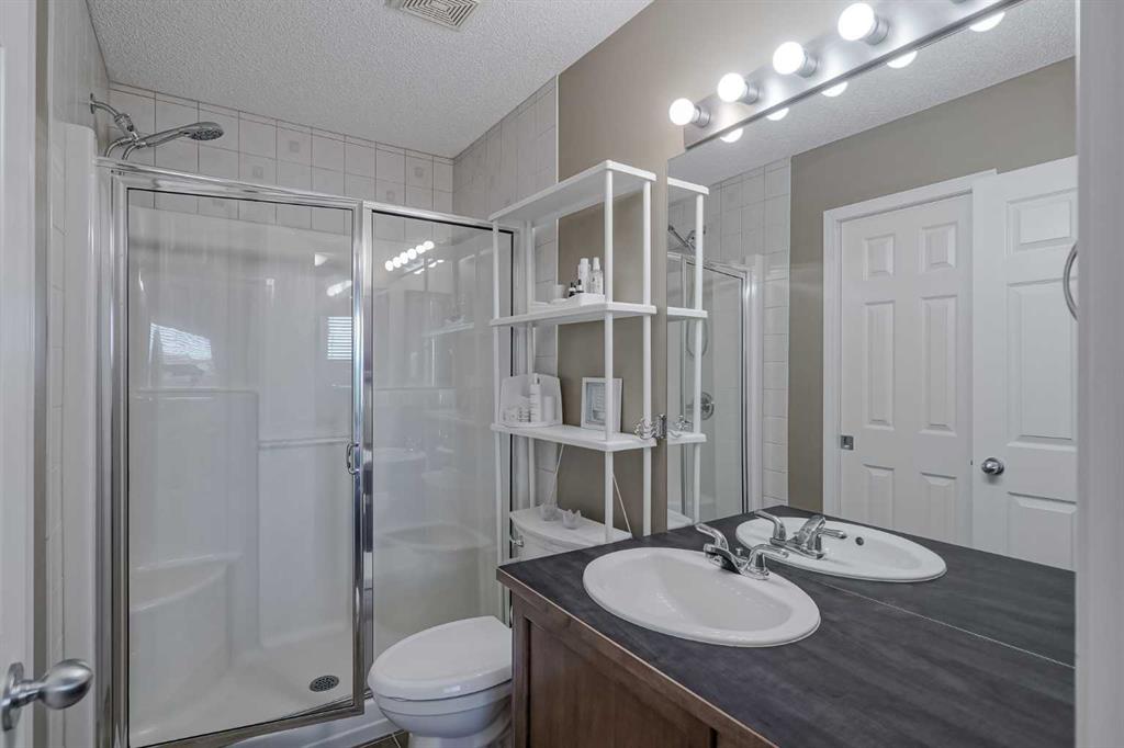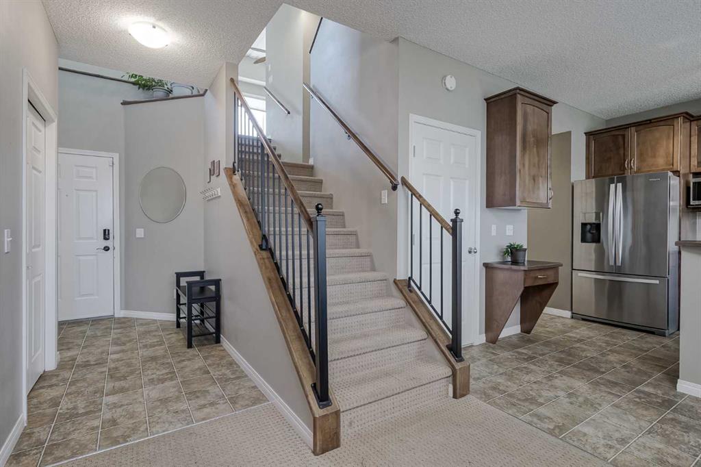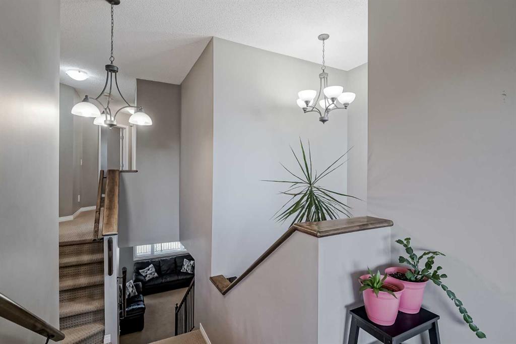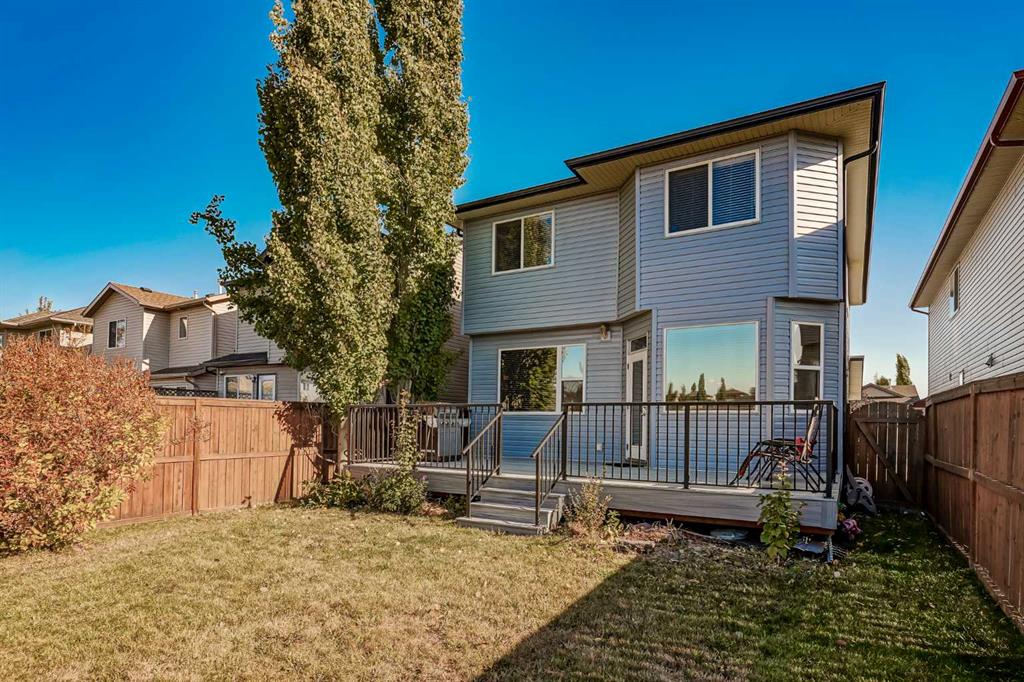 *OpenHouse Saturday October 18 12:00pm-3:00pm* Welcome to this beautifully maintained 3-bedroom, 2.5-bathroom home with a fully finished basement! Step inside to soaring vaulted ceilings and an open, light-filled layout that creates a warm and inviting atmosphere. The bonus room is perfect for a home office or family retreat, featuring large east-facing windows that fill the space with natural light. Stay cool all summer with a recently added A/C unit. Enjoy your private west-facing backyard, complete with a newly built deck — the ideal spot for barbecues, entertaining, or simply relaxing in the evening sun. The home backs onto a lane, adding extra privacy and flexibility. Located close to schools, parks, and Stoney Trail, you’ll love the easy access in and out of the community and proximity to all the everyday amenities you need. This home combines comfort, functionality, and a fantastic location — truly move-in ready!