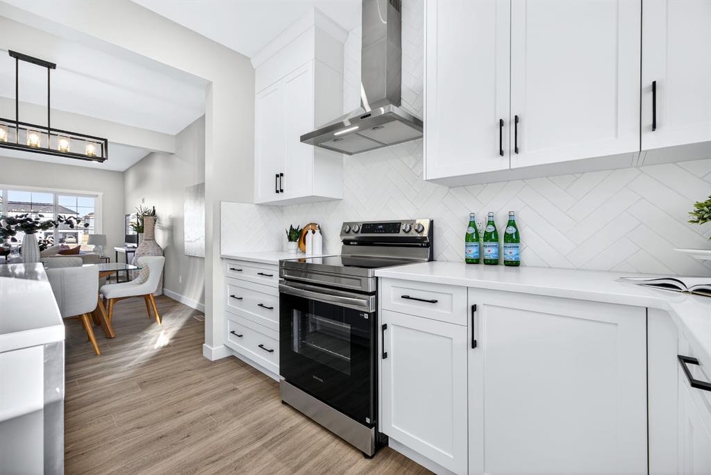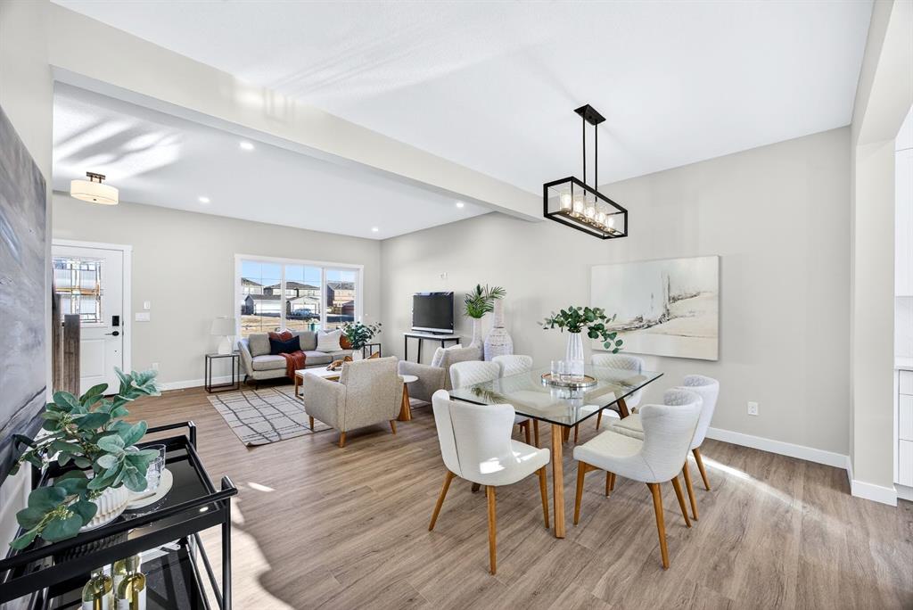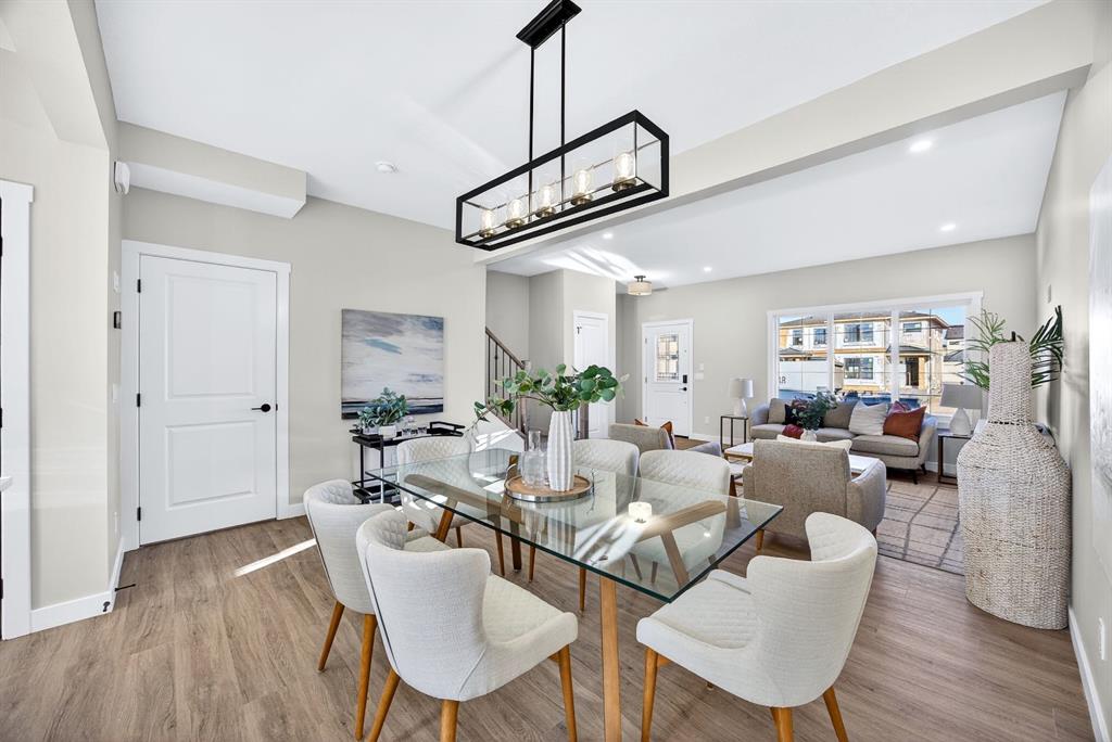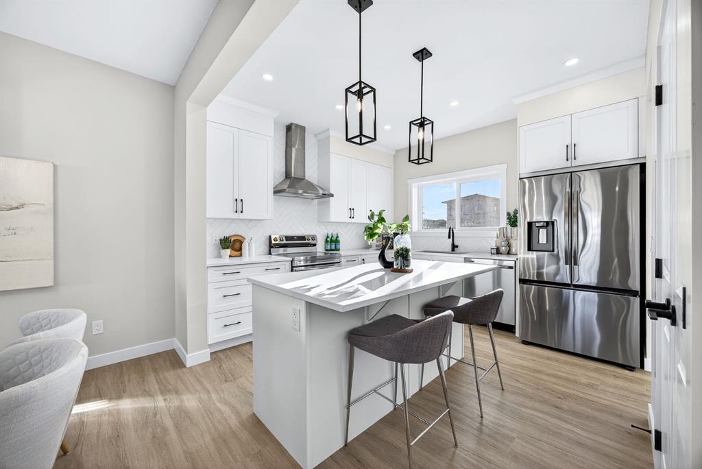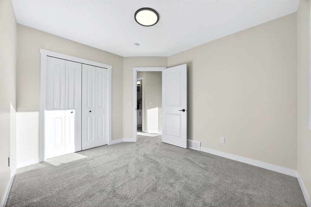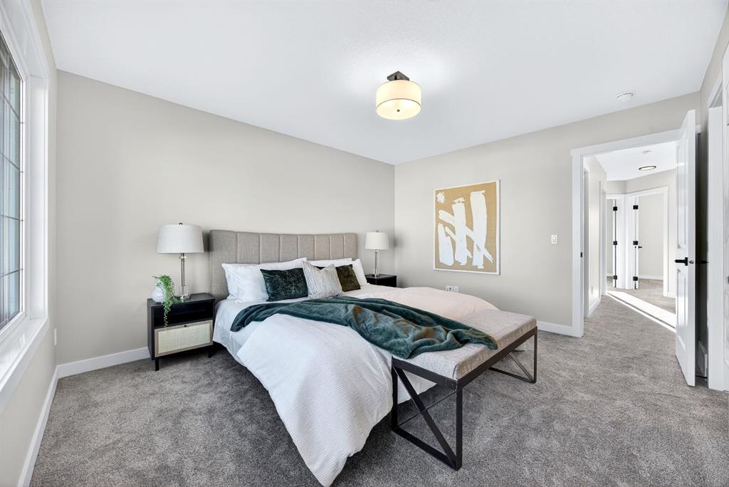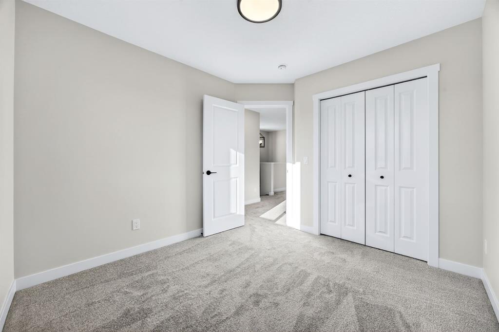 Welcome to this stunning, brand-new Genesis Builders duplex. The "Oscar" offers modern design, functional living, and exceptional future potential with basement suite rough-ins "legal suite subject to approval and permitting by the city/municipality", all complemented by a warm, inviting colour palette that creates a welcoming atmosphere throughout the home. Featuring 3 bedrooms and 2.5 bathrooms, this home is thoughtfully crafted and offers over 1400 sq ft. The main floor showcases a bright, sun-filled floorplan with 9' ceilings and a seamless open-concept layout, connecting the spacious living room, central dining area, and stylish kitchen. The kitchen is beautifully appointed with quartz countertops, two-toned cabinetry, a large central island, and a sleek stainless steel appliance package, complete with a gas line to the range. A convenient powder room completes the main level. Upstairs, the primary suite is a private retreat featuring a generous walk-in closet and a spa-inspired ensuite with his-and-hers sinks and an oversized shower. Two additional well-sized bedrooms, a full bathroom, and convenient upper-floor laundry complete the second level. The unfinished basement offers incredible flexibility with 9' ceilings, a separate SIDE ENTRANCE, and BASEMENT SUITE ROUGH INs, making it ideal for additional living space or future income potential. Outside, the backyard is a blank canvas, ready for your personal touch and offering the opportunity to build your dream garage. Located in the vibrant and family-friendly community of Fireside, this home offers the perfect balance of small-town charm and modern convenience. Fireside is known for its extensive pathway system, parks, playgrounds, and green spaces, ideal for walking, biking, and outdoor enjoyment. Residents love the easy access to schools, shops, restaurants, and everyday amenities, all just minutes away. With quick access to Highway 22 and Highway 1, commuting to Calgary or heading west to the mountains is effortless. *Taxes have not been assessed. Photos are representative of the same model. This property's colour palette is included in the pictures. RMS has been applied to the builder's construction drawings.